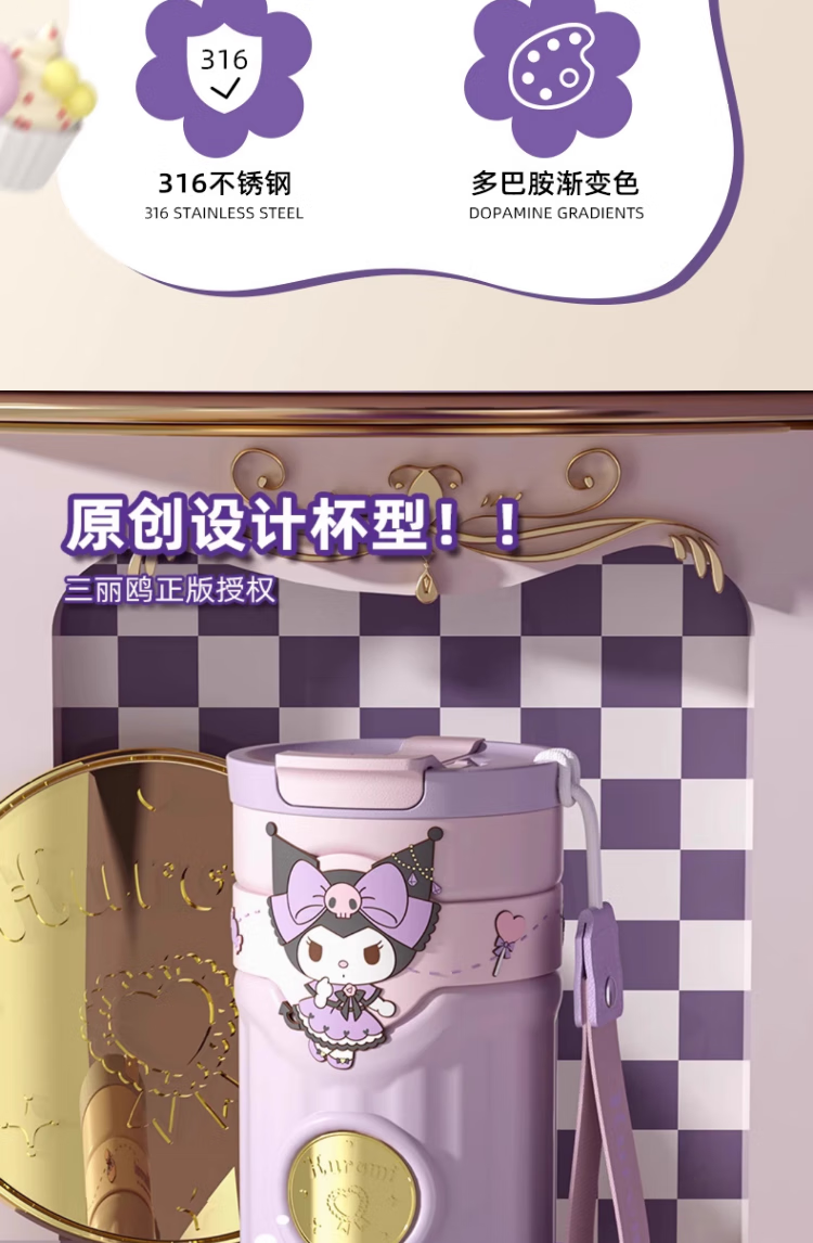 盟石儿童保温杯316不锈钢大容量水杯女生男生水壶学生上学专用杯子 美乐蒂-500ml【316不锈钢内胆】