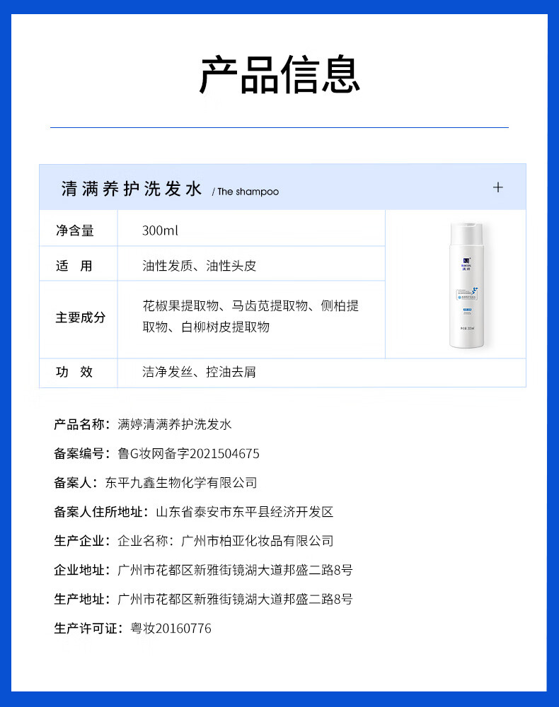 满婷清满滋养控油去屑修护洗发水沐浴露套装香皂家庭洗护套装 清满洗发水+清满沐浴露