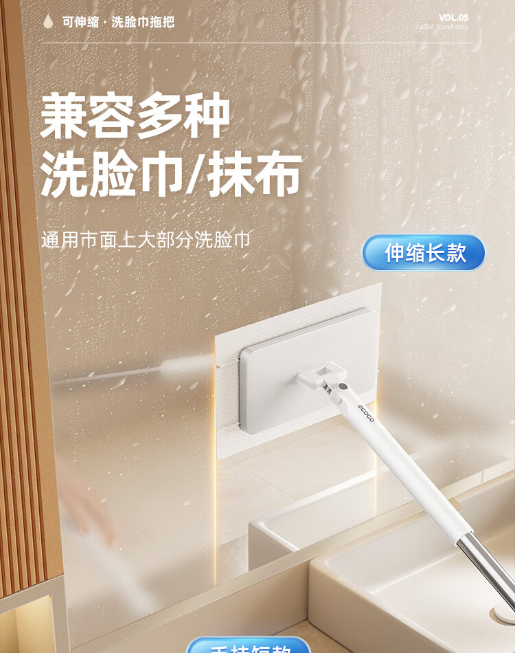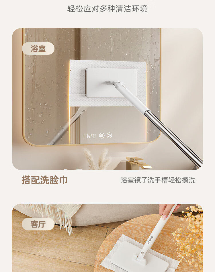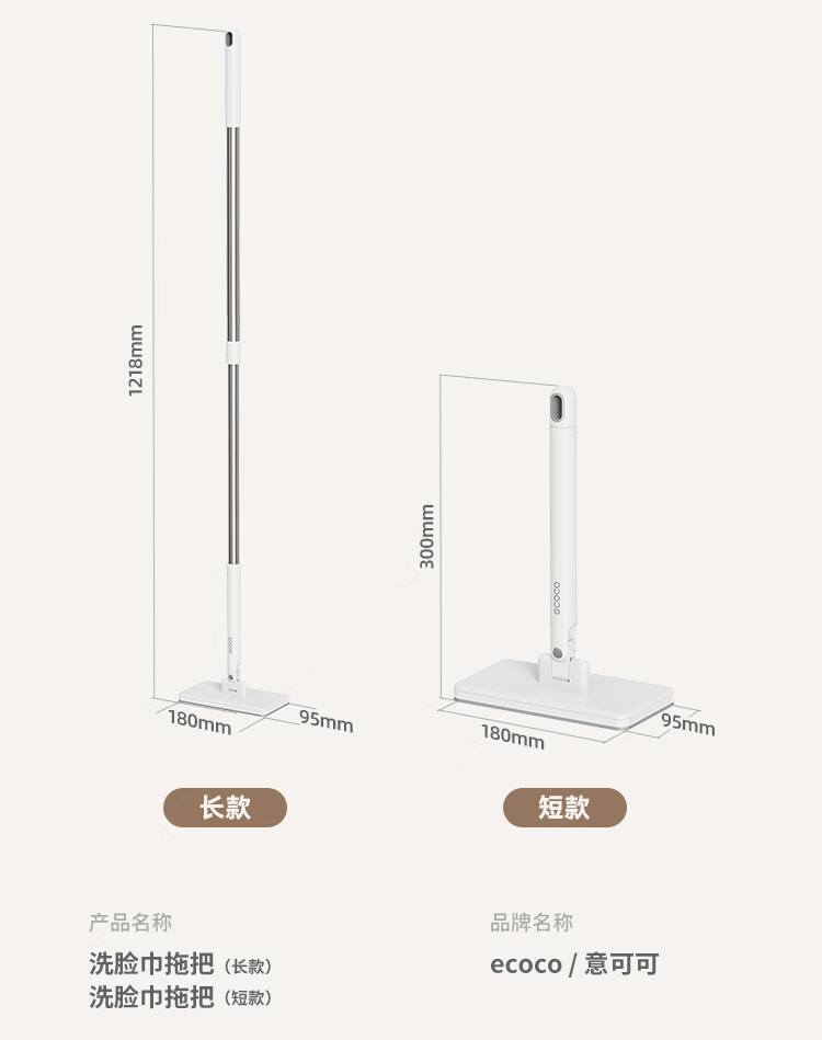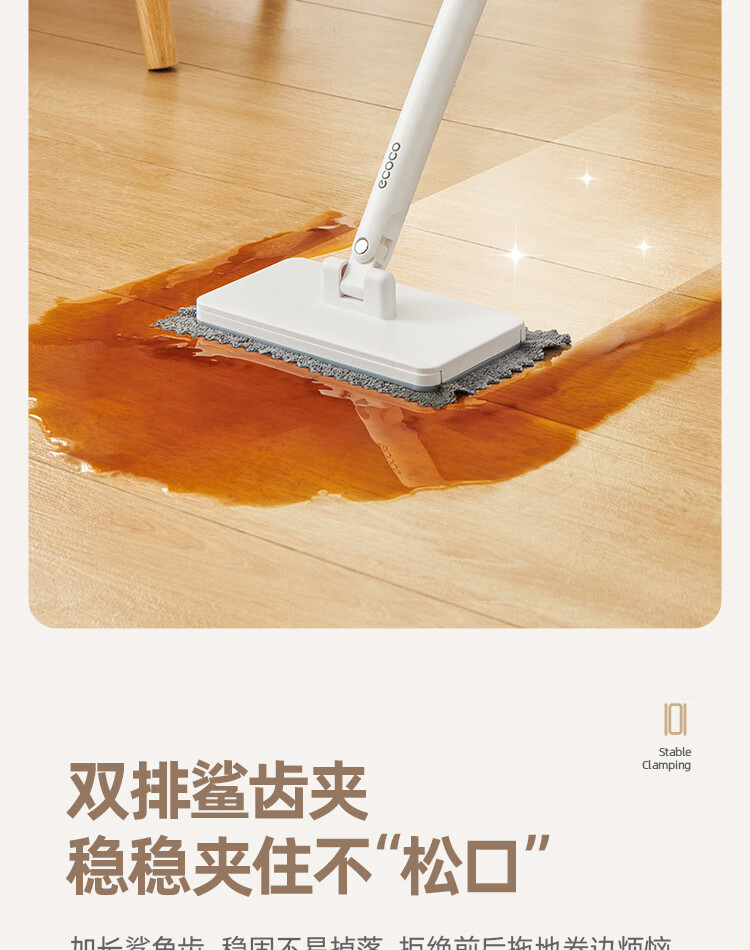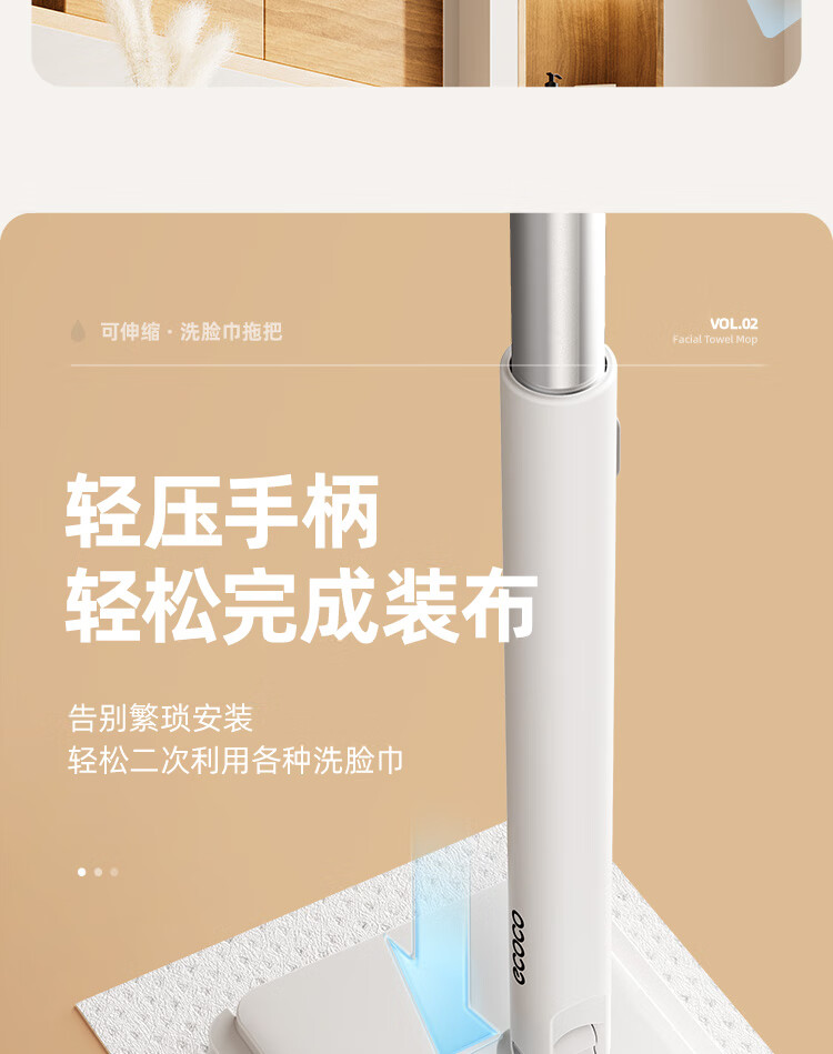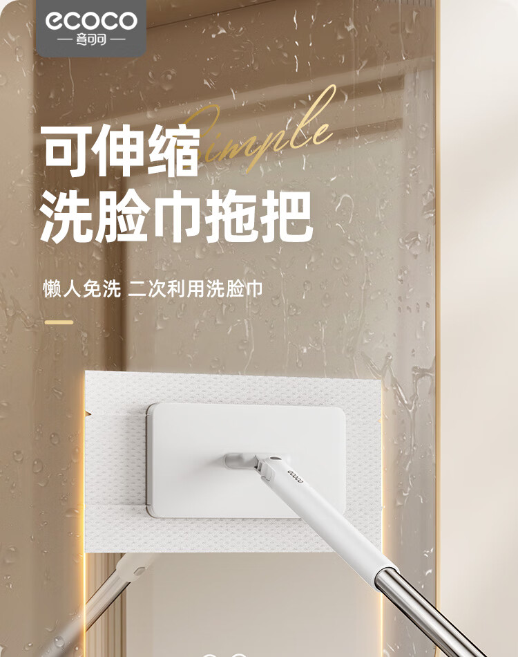ecoco洗脸巾拖把自动夹抹布迷你小拖把家用2025新款懒人拖地神器 【伸缩长款】夹布拖把+抹布*1