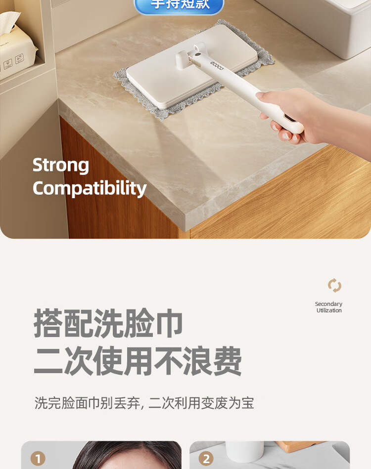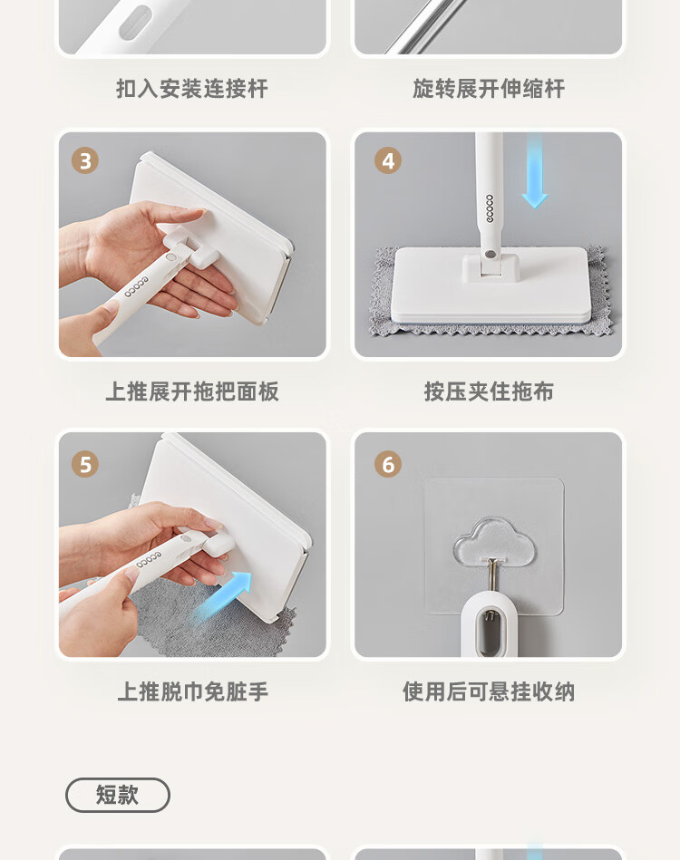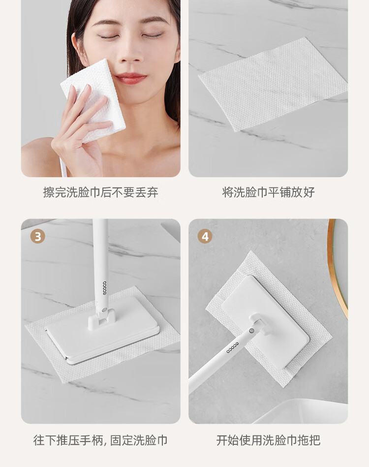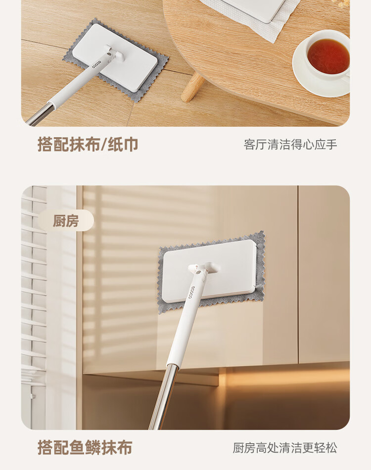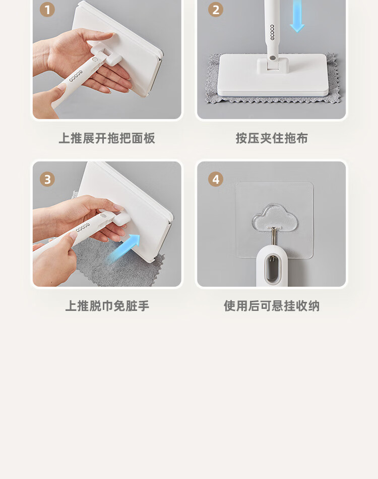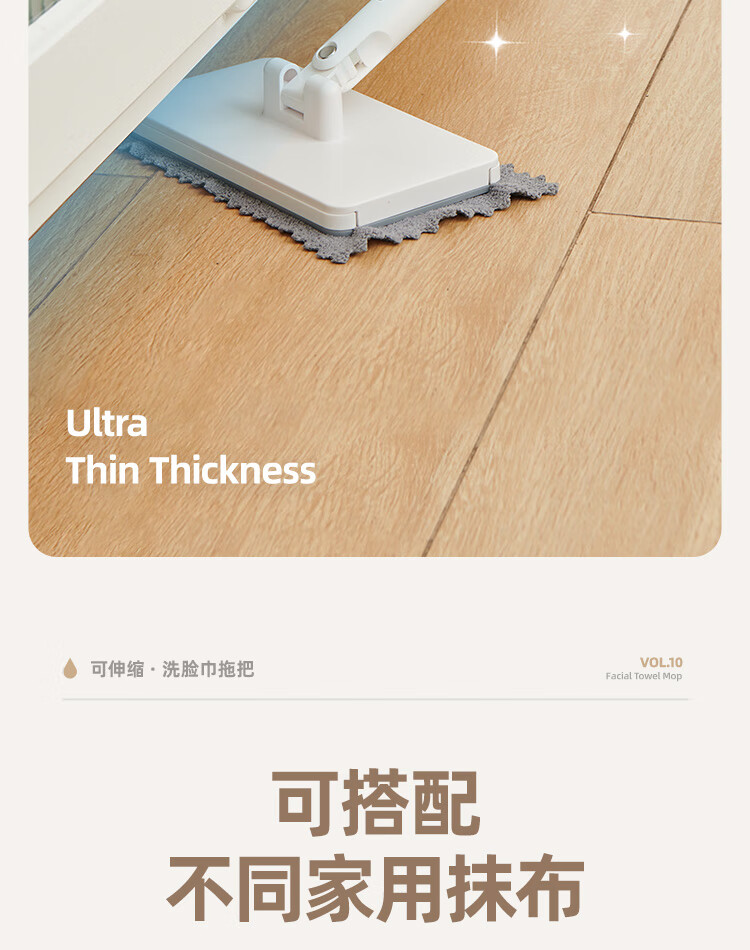ecoco洗脸巾拖把自动夹抹布迷你小拖把家用2025新款懒人拖地神器 【伸缩长款】夹布拖把+抹布*1