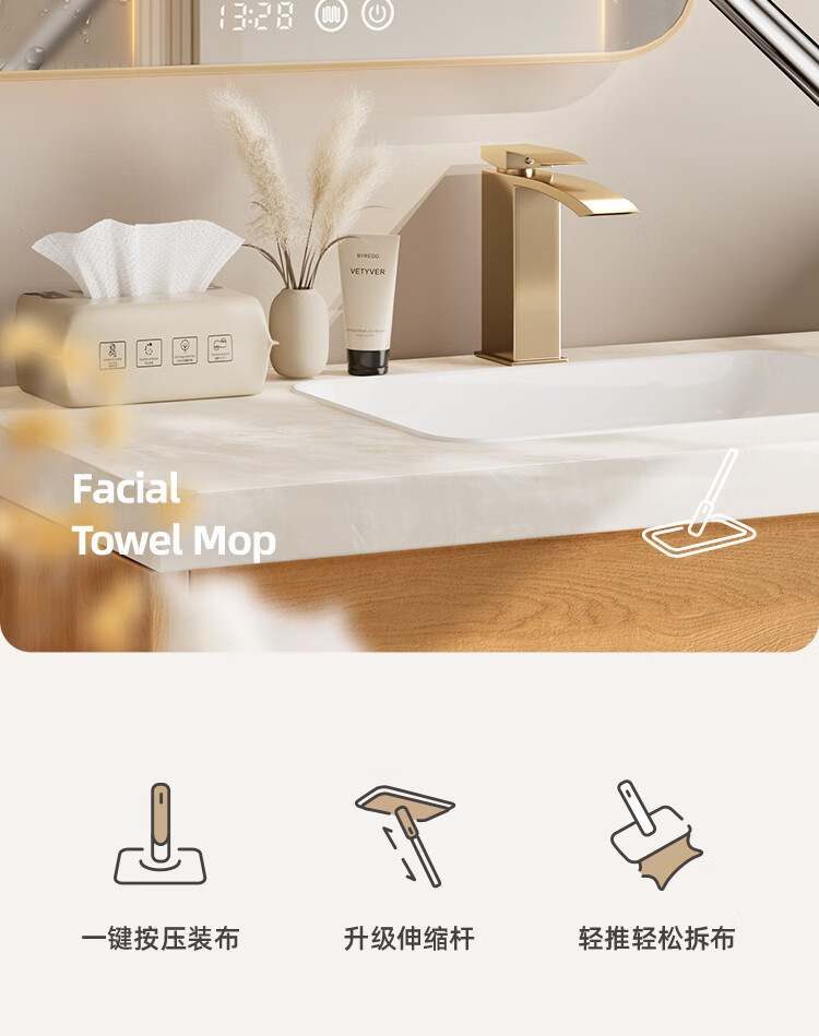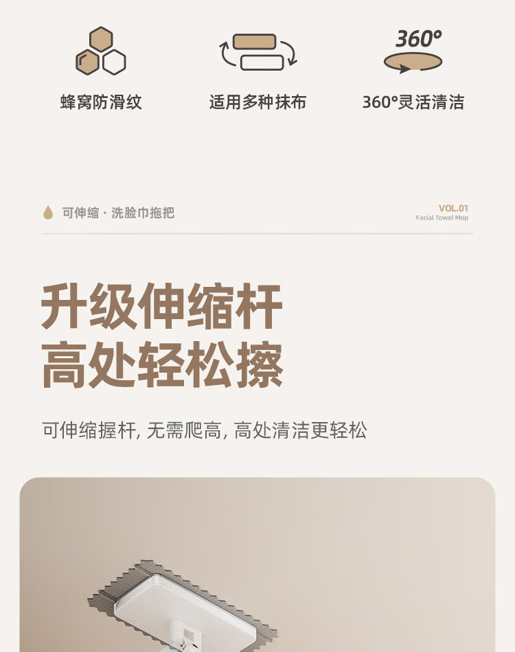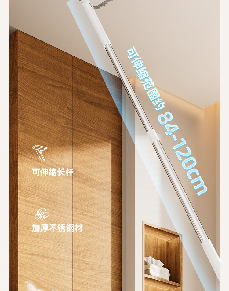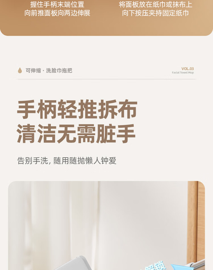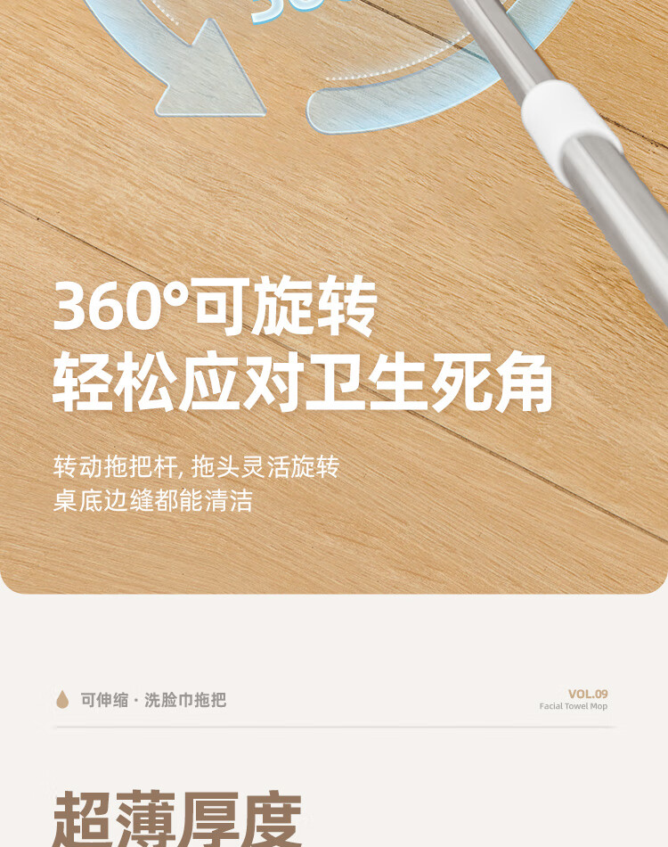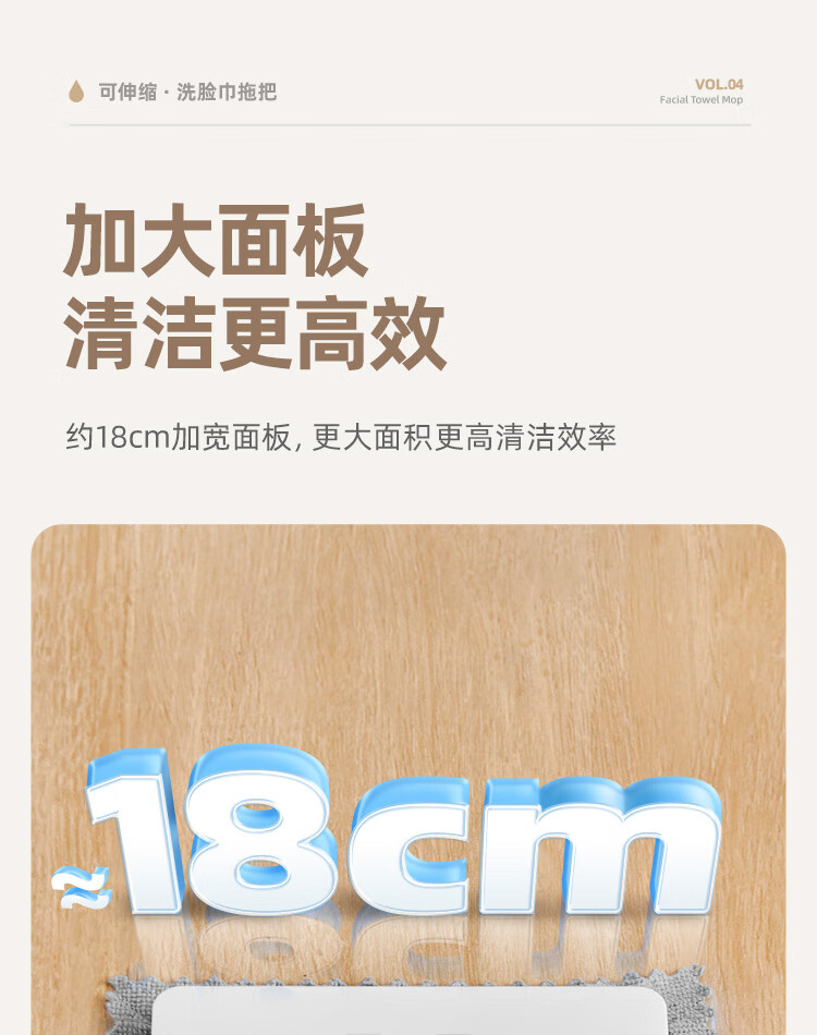 ecoco洗脸巾拖把自动夹抹布迷你小拖把家用2025新款懒人拖地神器 【伸缩长款】夹布拖把+抹布*1