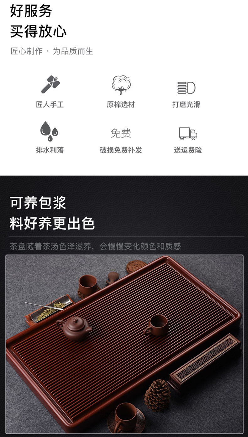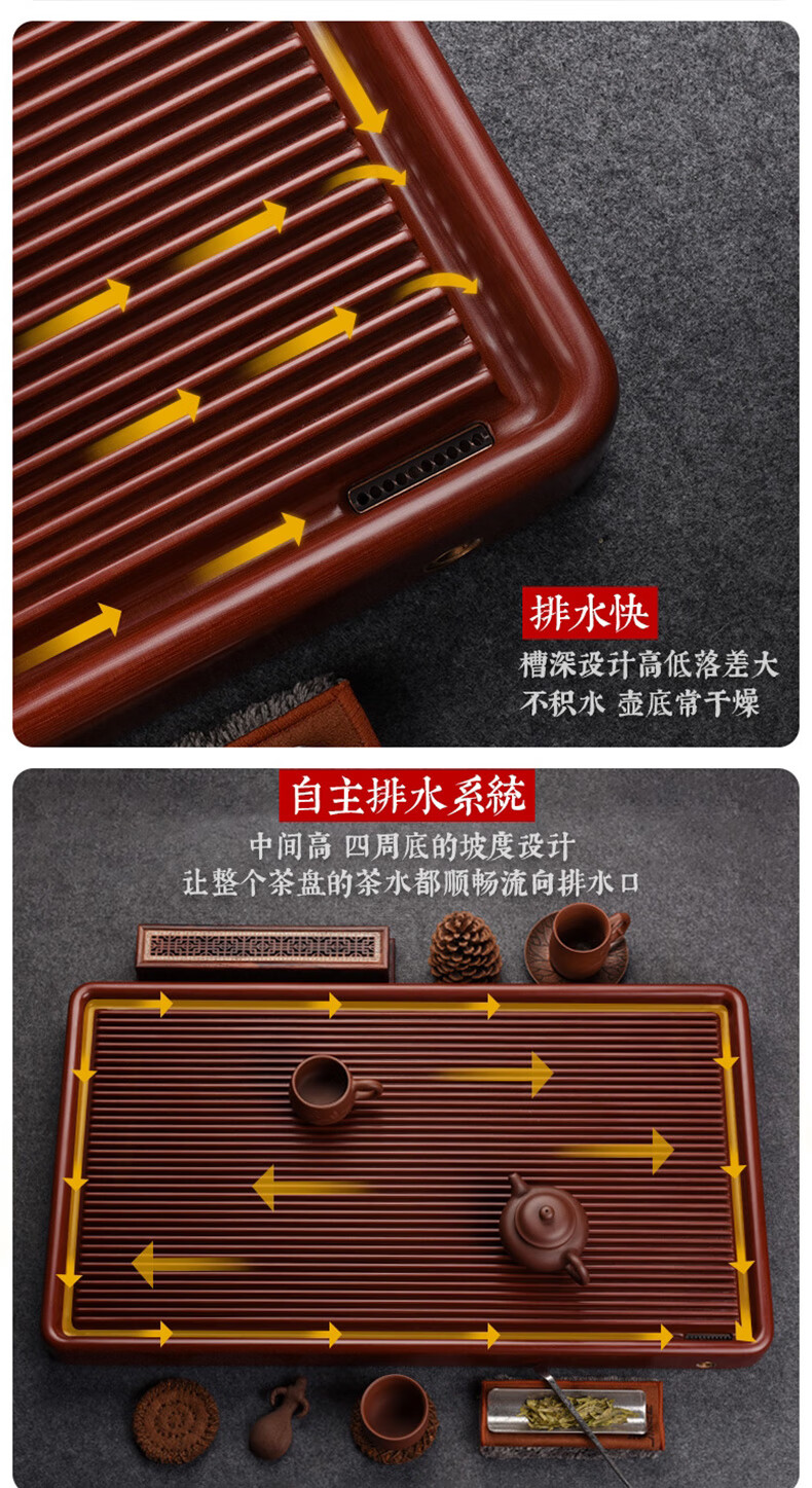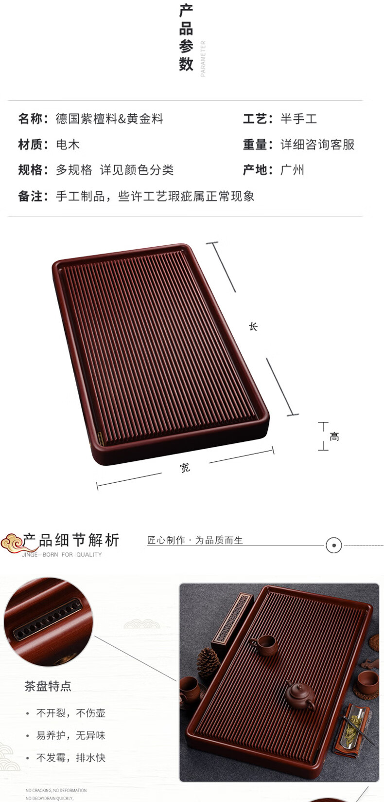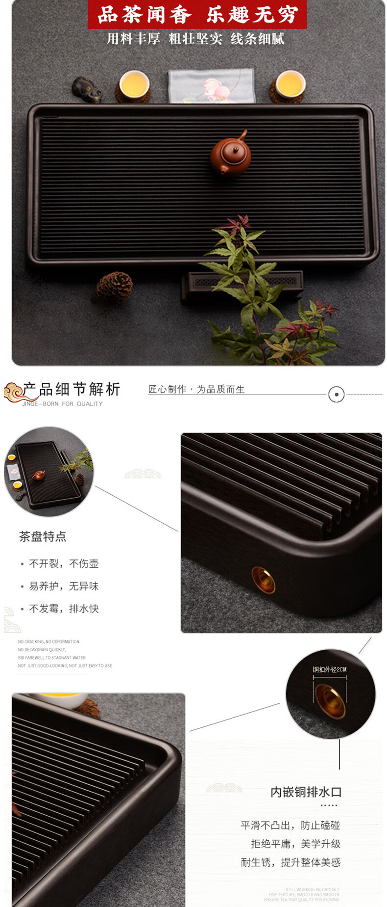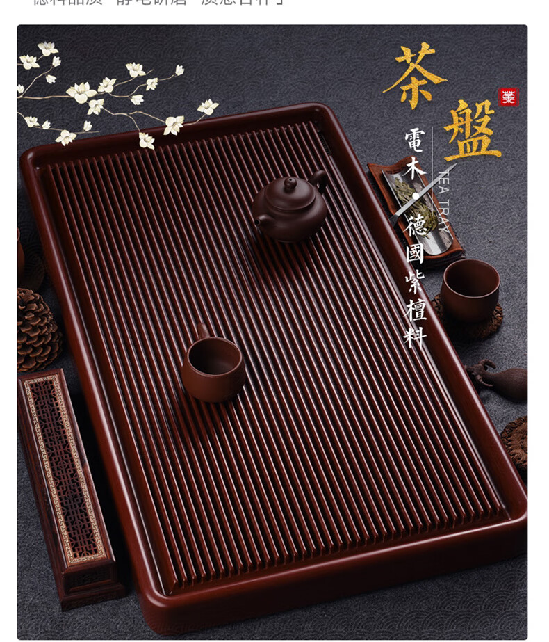 茗茶源德国电木茶盘家用新款功夫茶具电胶木泡茶台简约茶托盘茶具送礼 德国电木紫檀料长70宽40高5cm