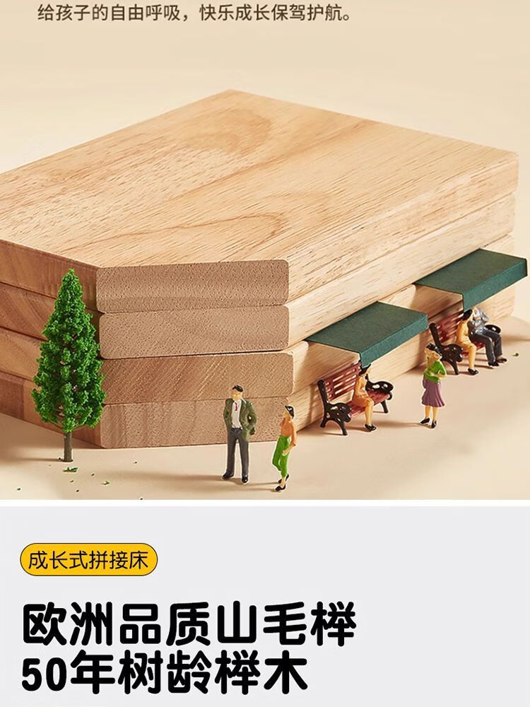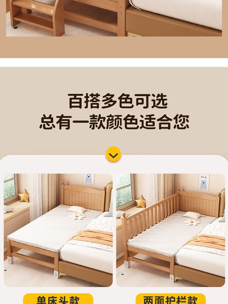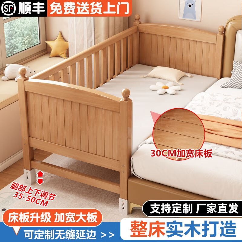 秋莹榉木婴儿拼接床加宽小床儿童床带护栏宝宝床男女小孩实木大床边床 【单床头】+6CM乳胶棕垫床腿可调 顺丰到家200*50【加宽30CM床板】