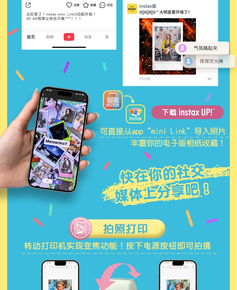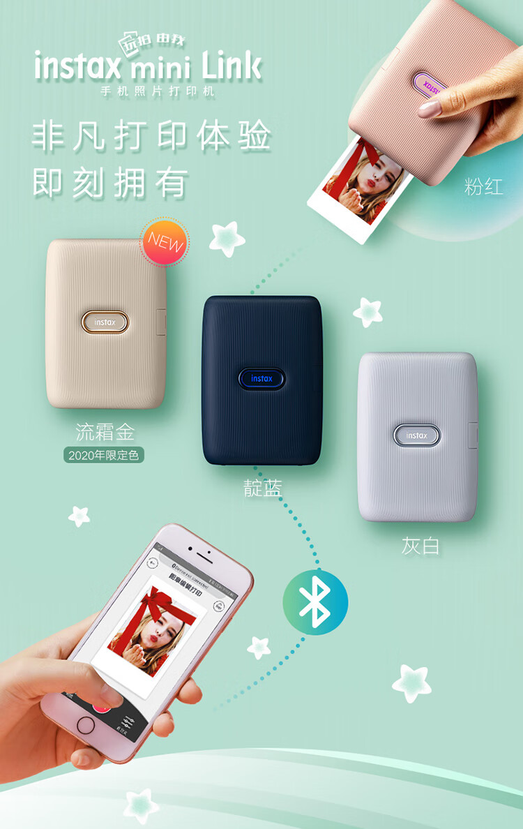 富士instax mini link3 一次成像拍立得手机照片打印机口袋式便携打印机旅行送闺蜜女友情人节生日礼物 【太空蓝】 套餐一【标配+相纸20张】