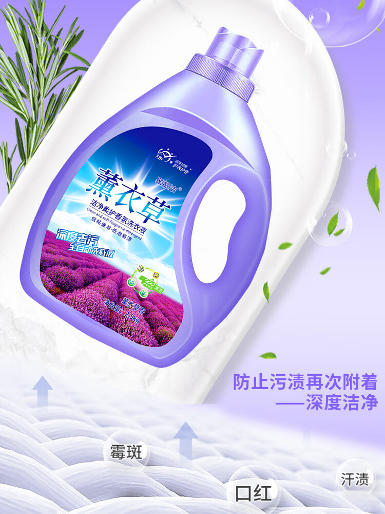 薰衣草洗衣液厂家香氛洗衣液10斤家用量批地推洗衣液 2.5kg 1瓶 【*】共5斤