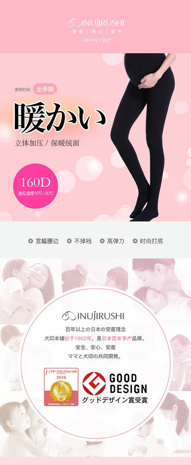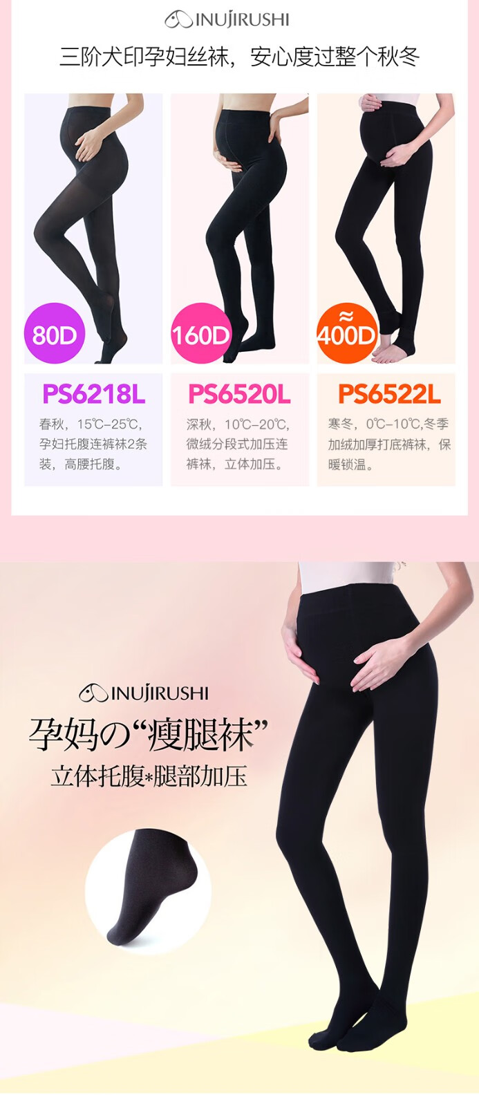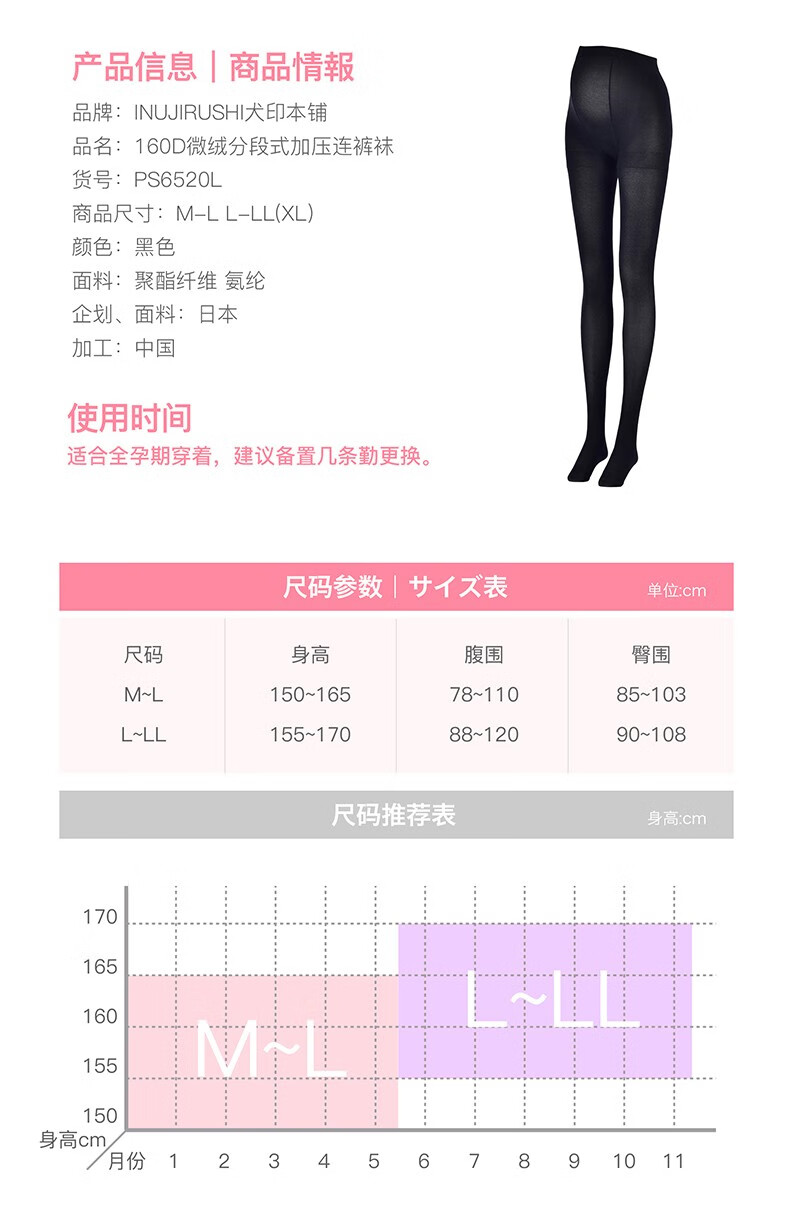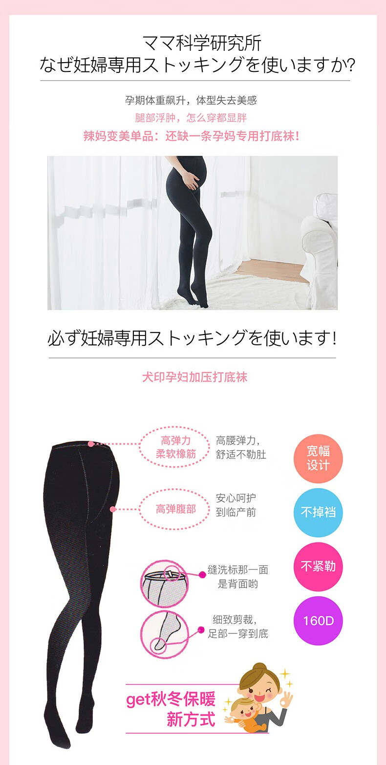 犬印本铺 秋冬打底裤分段式160D加绒加压连裤袜塑身美腿打底袜孕妇裤 160D加绒黑色 L-LL