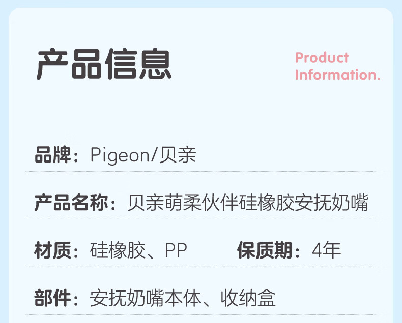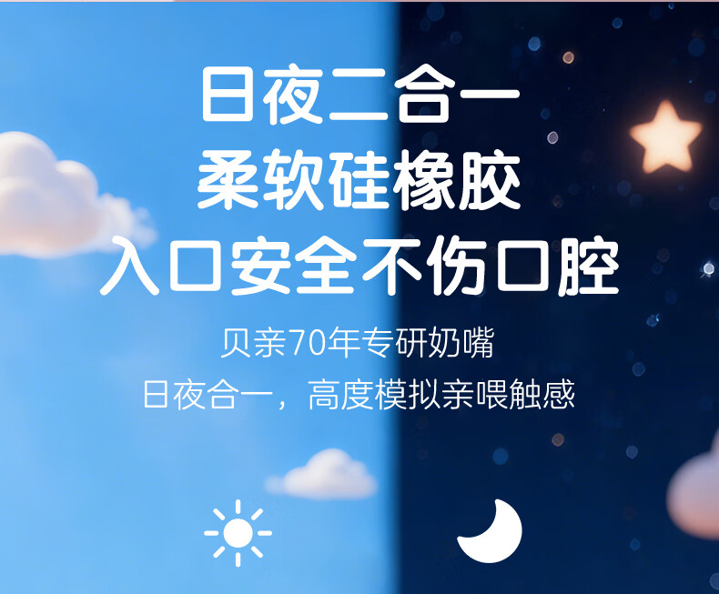 贝亲安抚奶嘴 牙胶咬咬乐 婴儿口欲期奶嘴安抚 萌柔伙伴系列 L号 云朵蓝 6-18个月 1只装