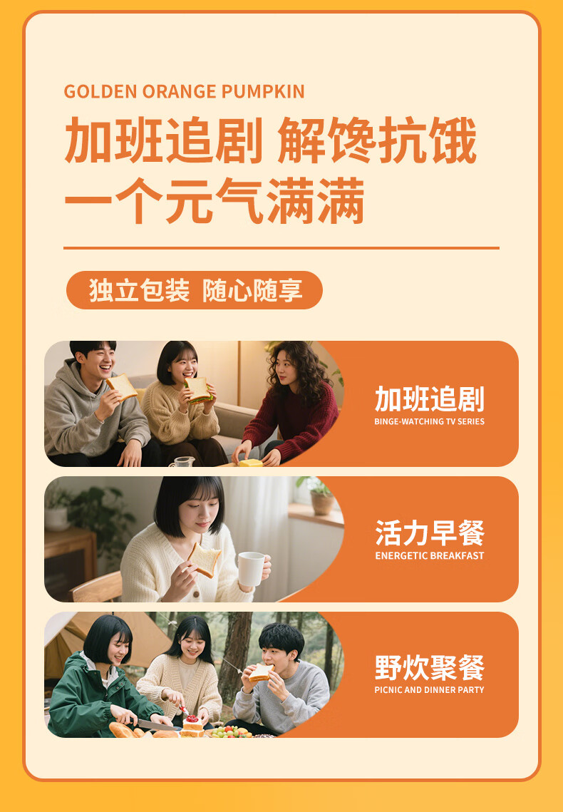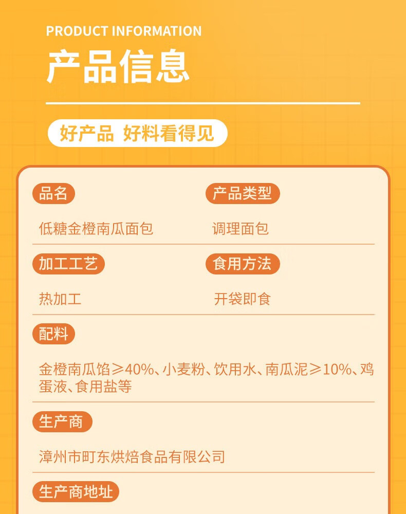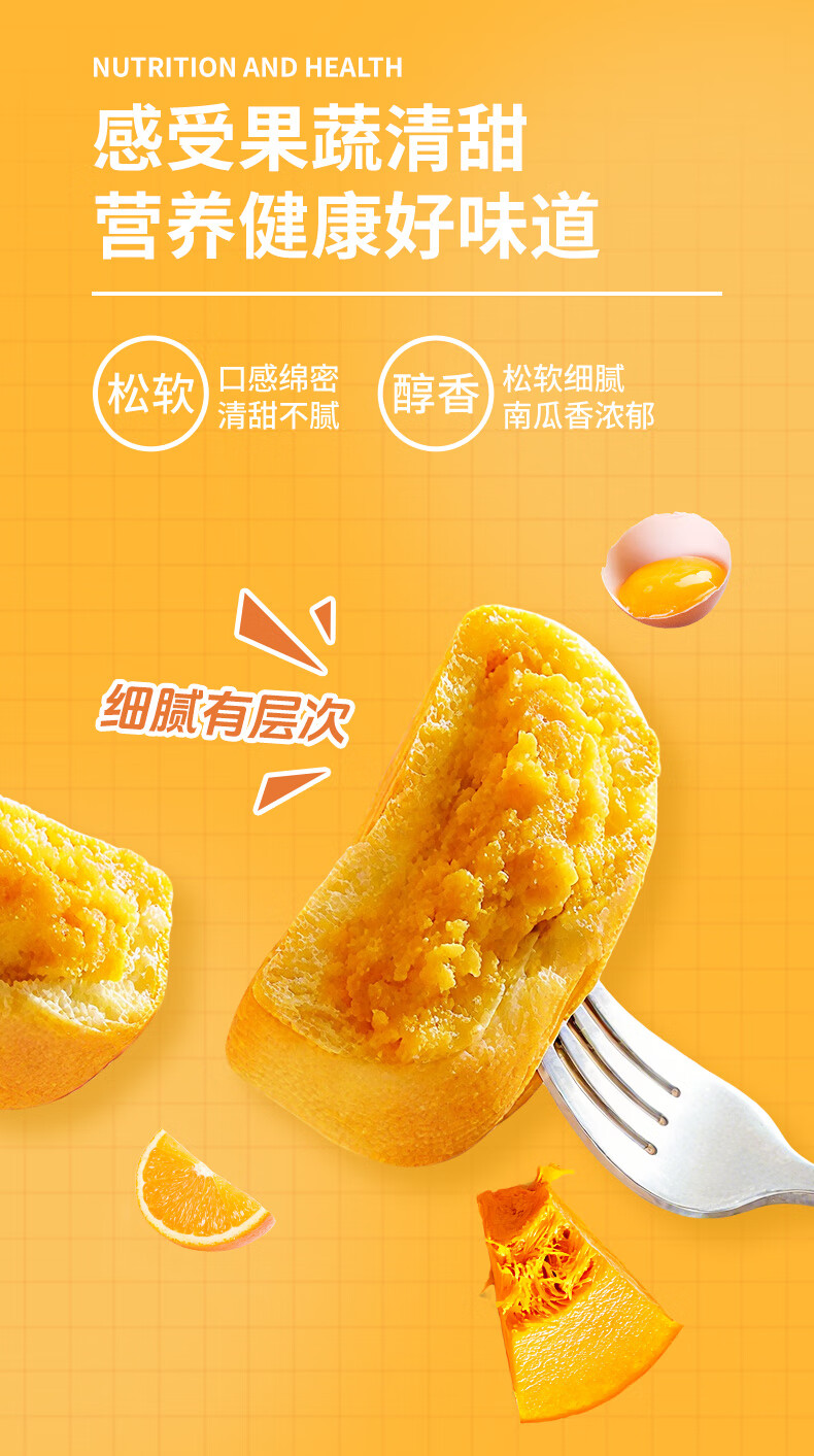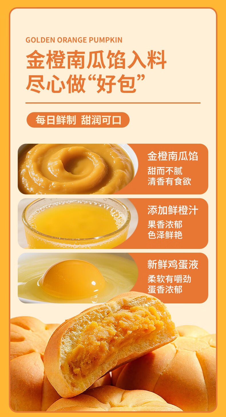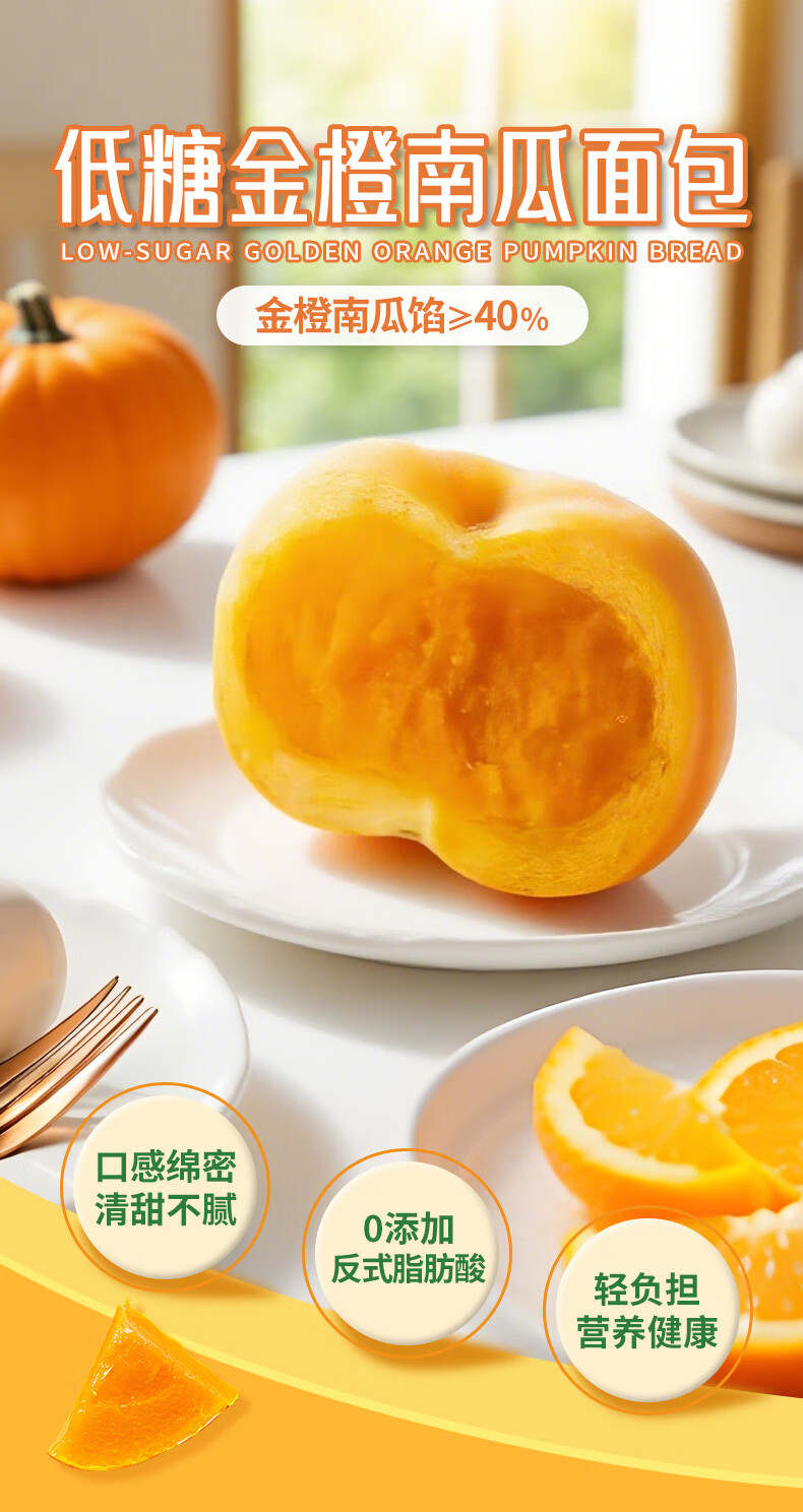 每日赞低糖金橙南瓜面包营养代早餐糕点心夹心吐司休闲零食品整箱320g 低糖金橙南瓜面包整箱320g