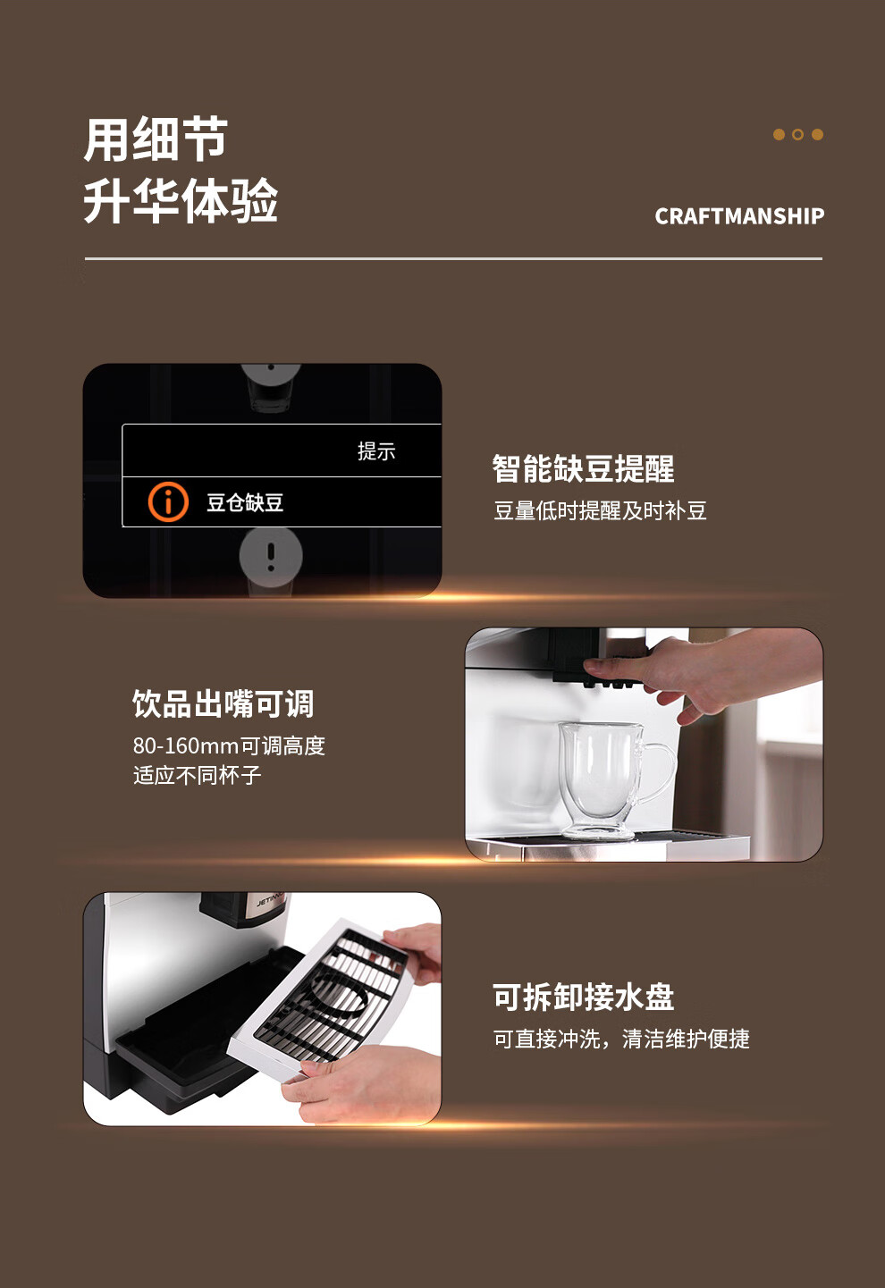 技诺(Jetinno)咖啡机全自动意式咖啡机 家用商用办公室研磨一体机 19Bar泵压 进口特种钢材平刀盘 【商用高配】JL29B香醇黑咖机