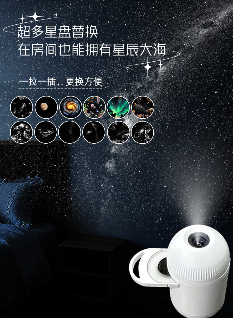 BOXVOUS星空小夜灯卧室睡眠灯婴儿喂奶儿童礼物星空投影灯玄关床头氛围灯 星空小夜灯6张星盘【超清版】