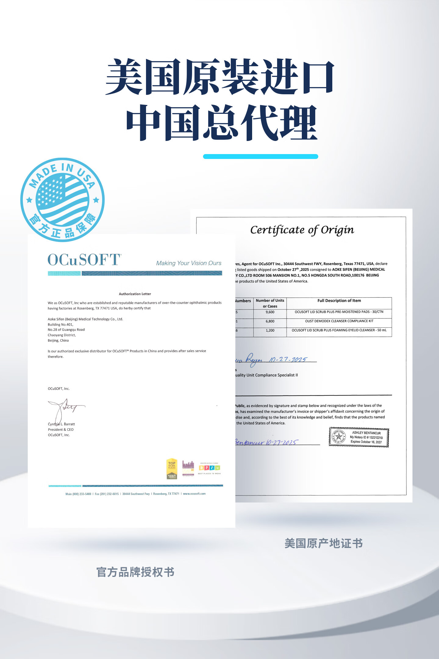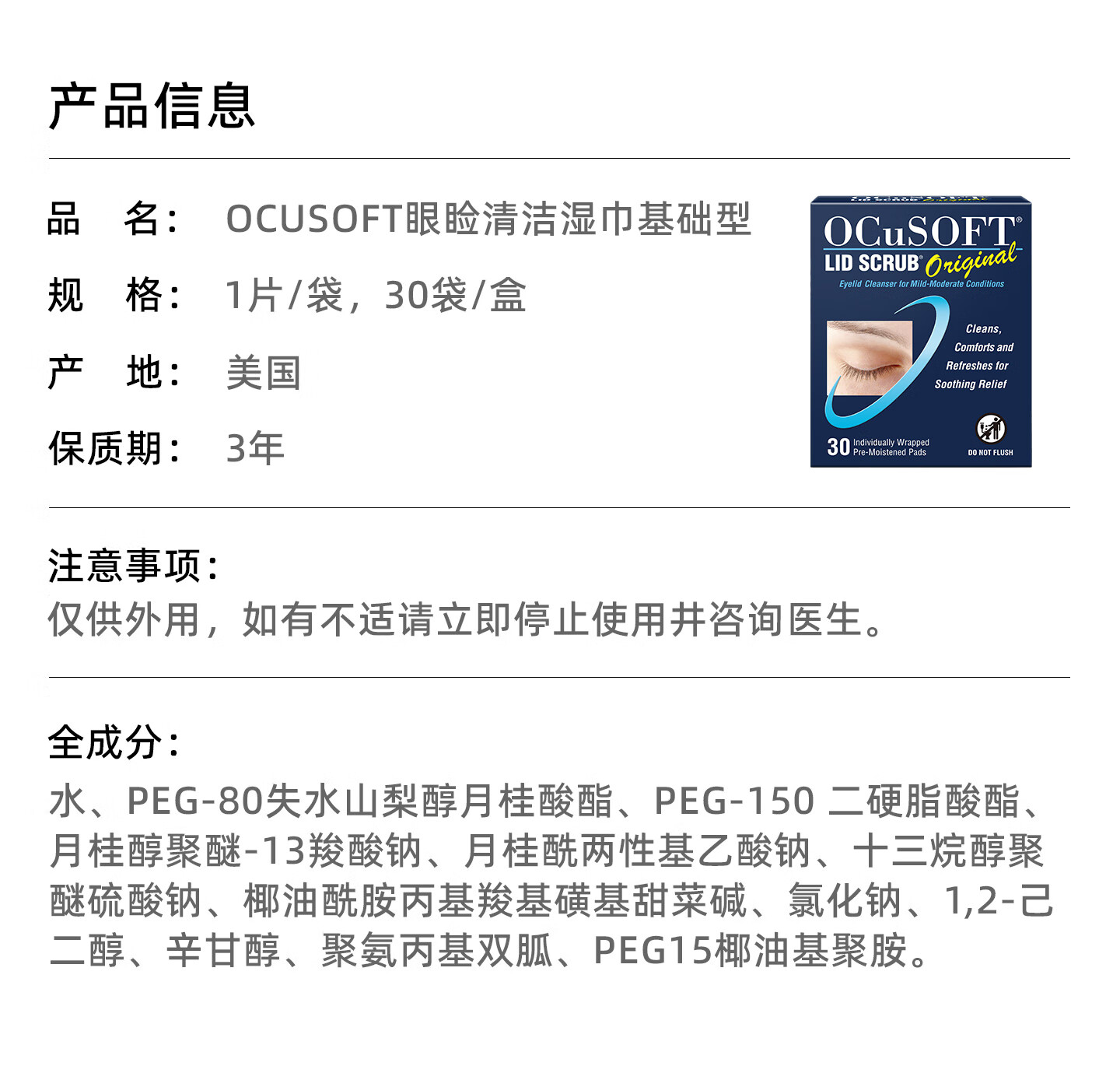 OCuSOFT【缓解眼不适】基础型湿巾 眼睑清洁改善眼不适 深层清除油脂 1盒:30片