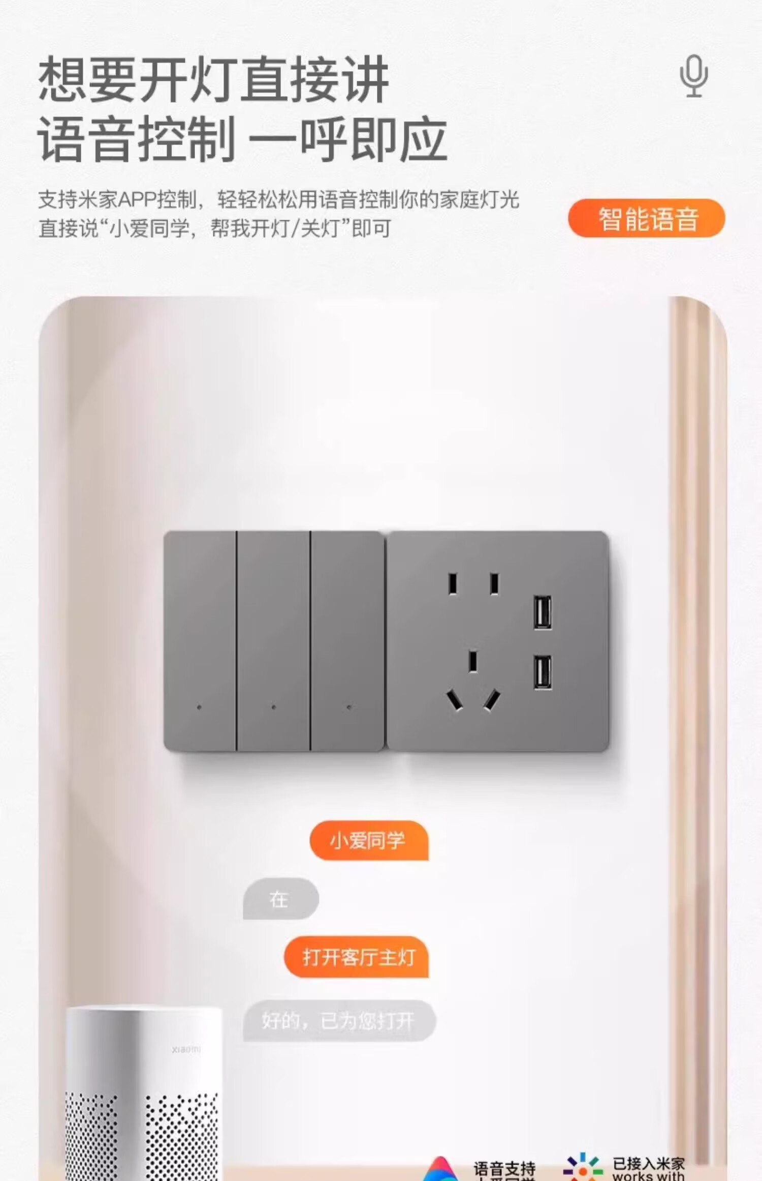 小米家用免打孔轨道插座厨房餐边柜客厅可移动电力滑盖插排加长插线板 灰色50公分轨道+3个五孔1个USB