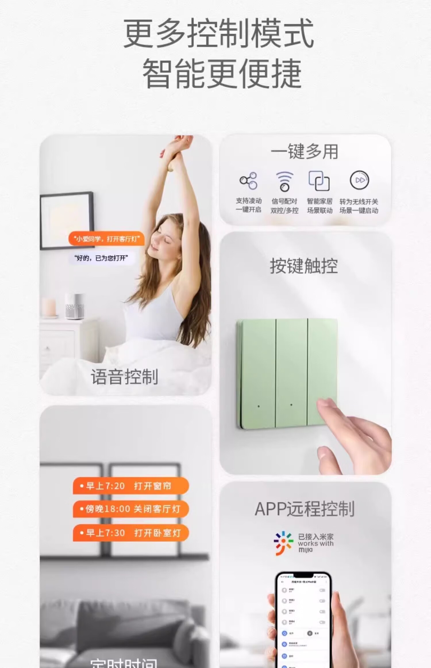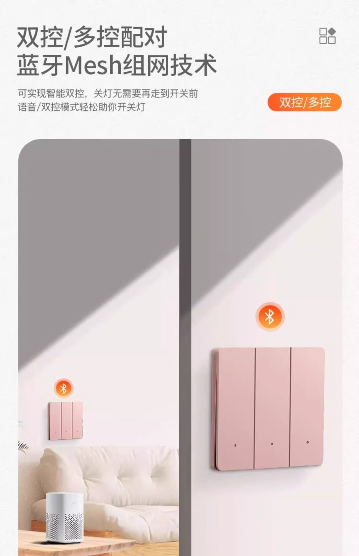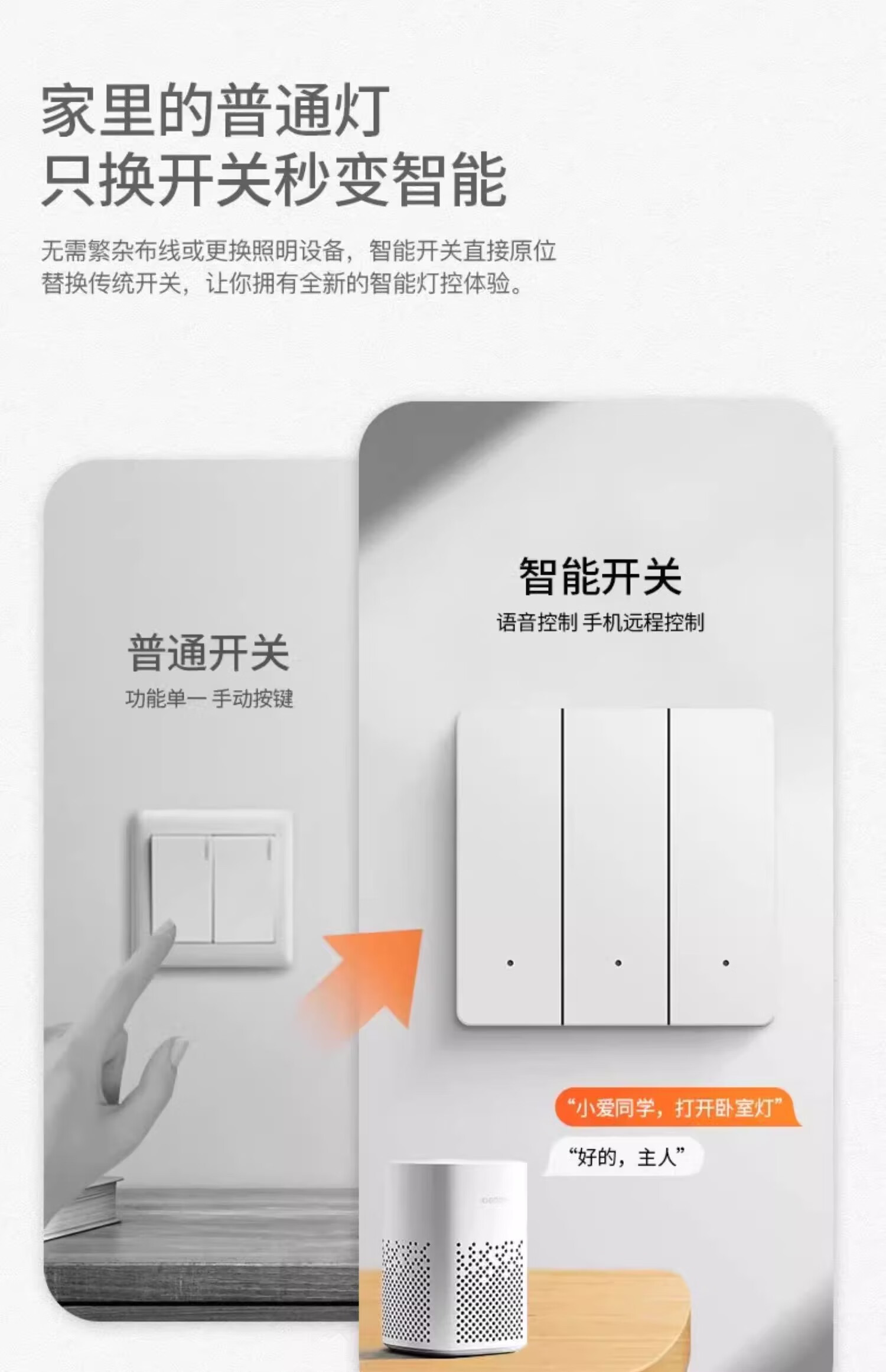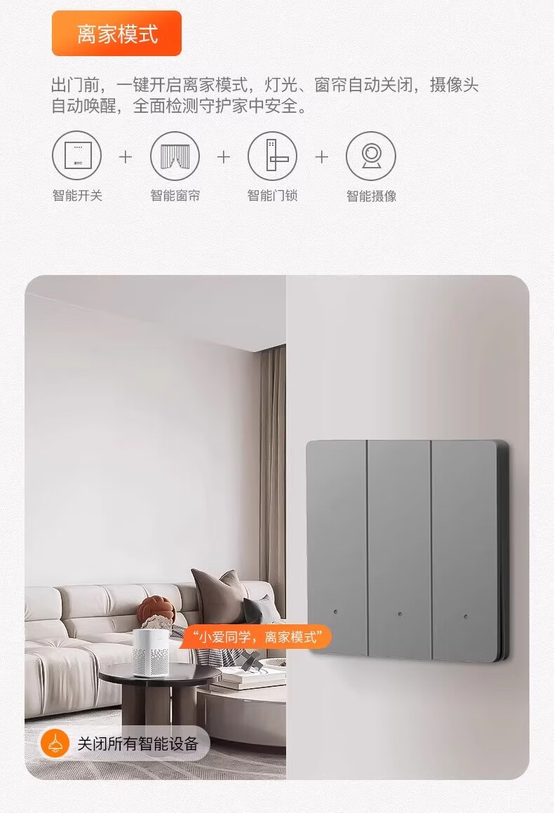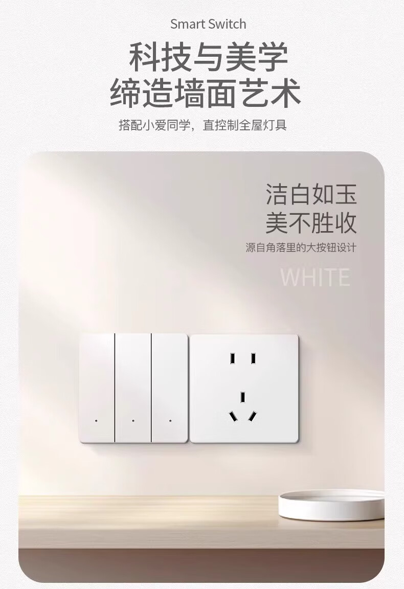 智能开关面板超薄双控支持小爱同学语音控制零火版已接入米家APP 钢化玻璃四开[白色-单火版]零