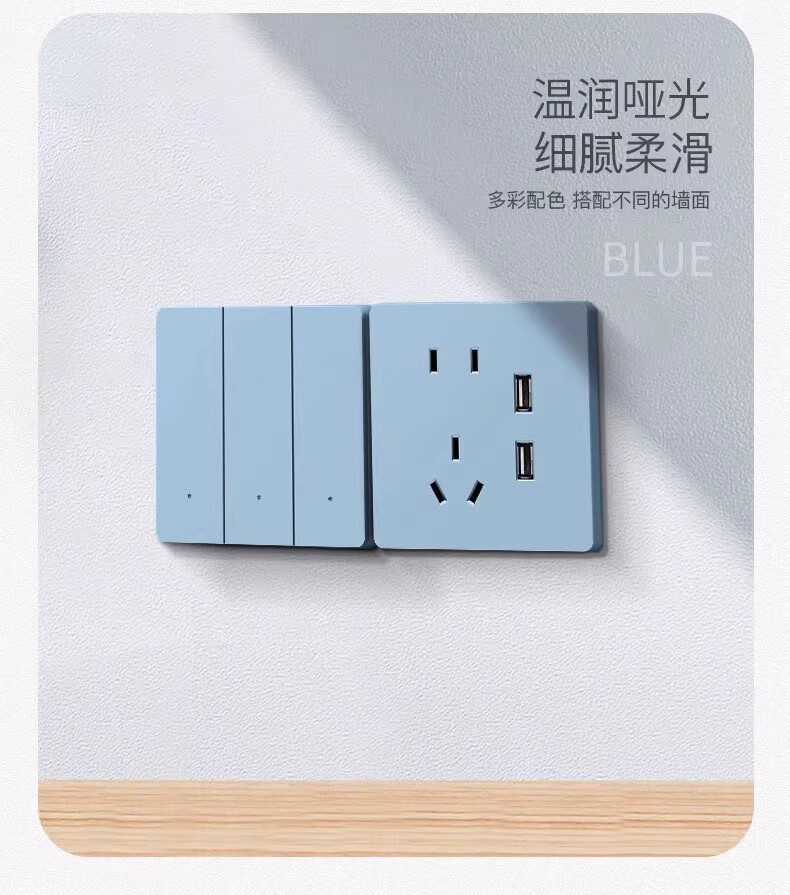 国际电工86型超薄钢化玻璃开关插座五孔双USB面板墙壁家用多孔3孔空调插座 一开16A三孔