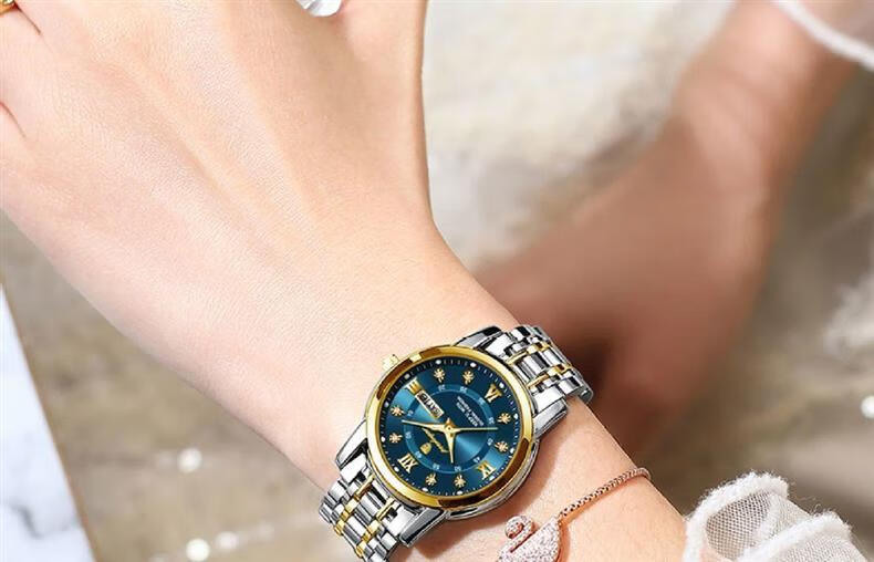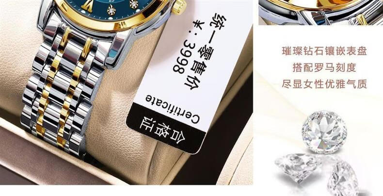 巨靓瑞士旗舰新款正品名牌女士手表女款满钻表全自动镶钻时尚防水女表 旗舰升级新版-玫瑰金满天星