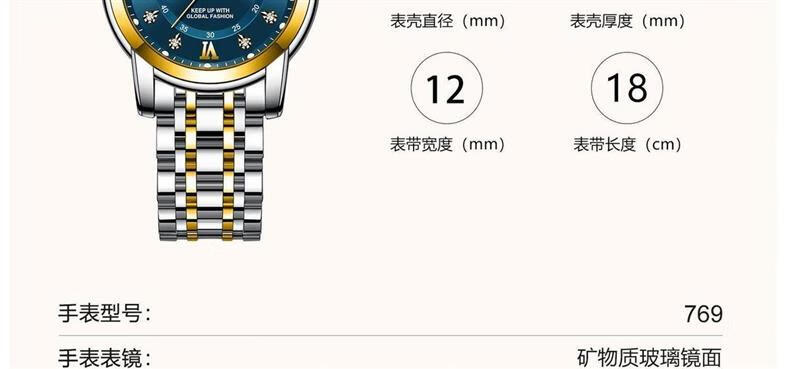 瑞士认证网红女士手表女正品气质防水夜光高档时尚名牌女表新款 专柜高端礼盒-769金壳金面钢带