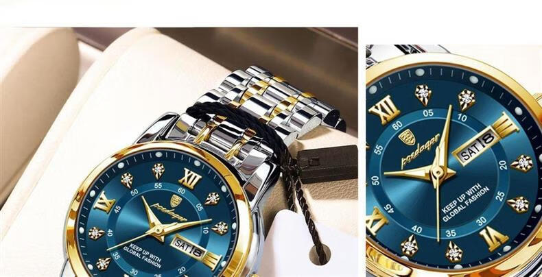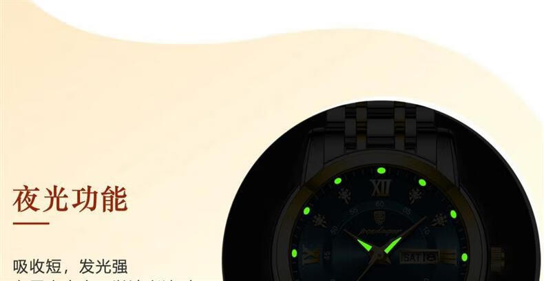 瑞士原装正品全自动机械表防水手表男士时尚商务夜光日历品牌名表 旗舰升级加强版-黑面黑壳 黑皮带