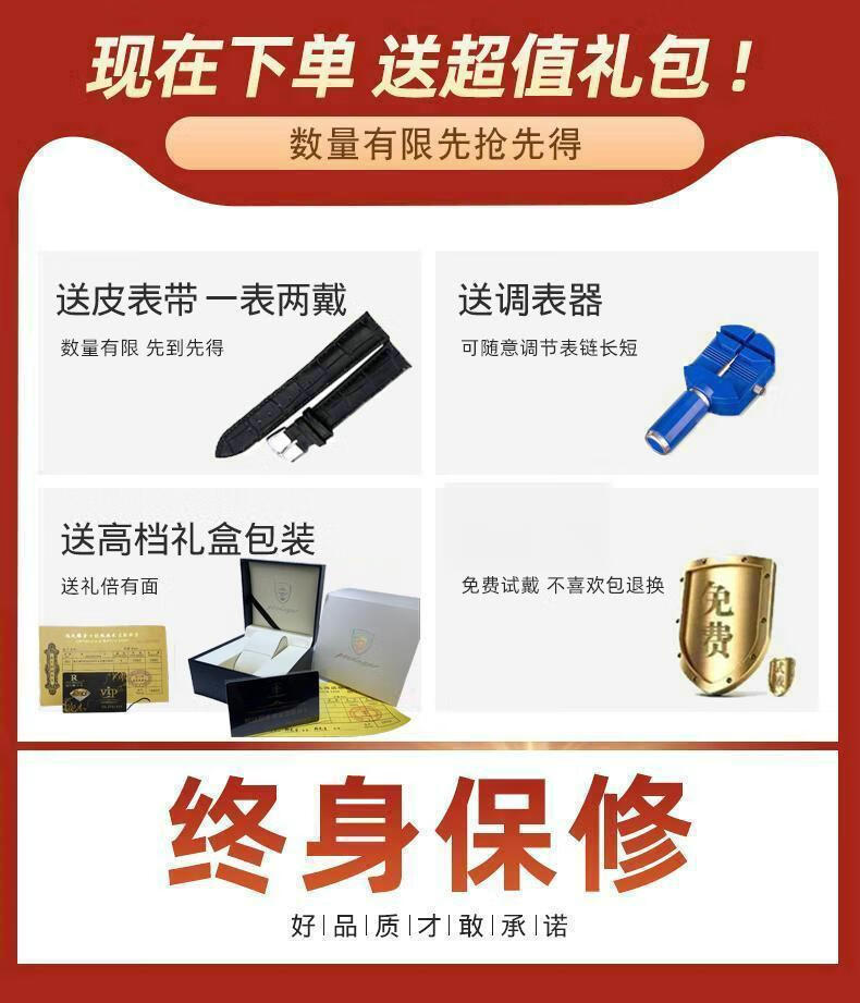 巨靓新款瑞士正品手表女士全自动轻奢表夜光防水时尚名牌气质女表百搭 旗舰升级新版-红色 旗舰升级新版-礼盒装