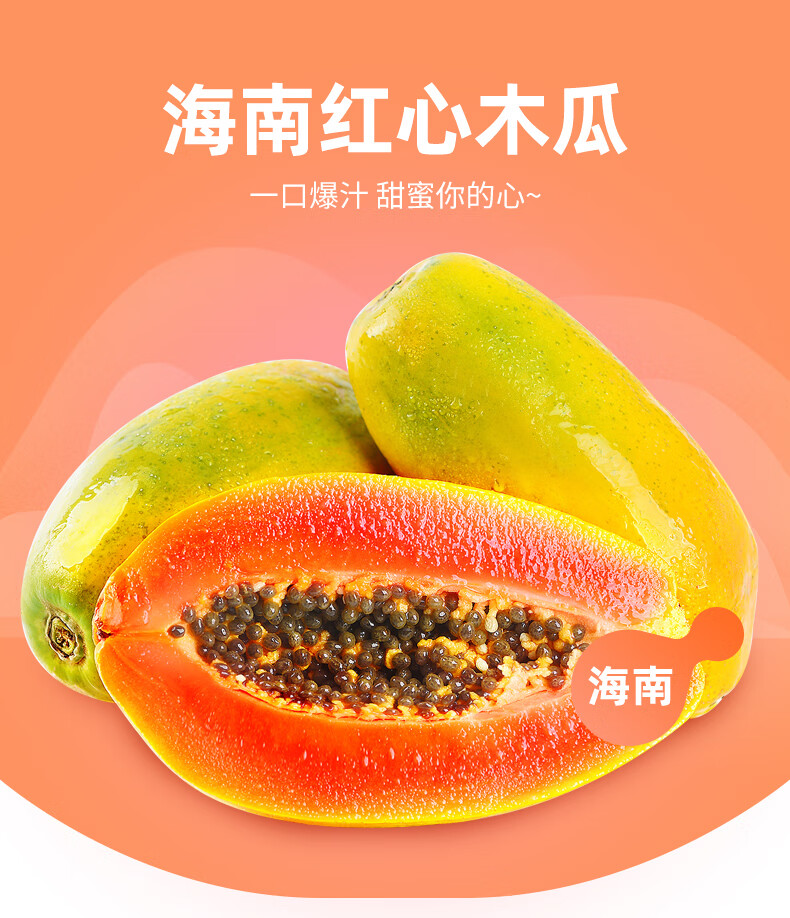 皇金蜜(顺丰速运)木瓜 海南红心木瓜牛奶木瓜 树上熟新鲜当季水果礼盒 5斤 中果-当日现摘(顺丰)