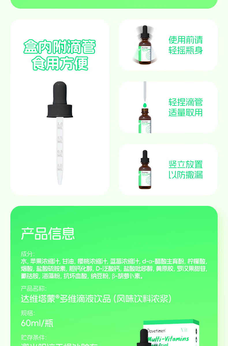 迪适兰托达维塔蒙多维滴液60ml水果味vbvevd多种维生素新西兰原装进口 【新西兰进口】多维滴剂 60ml*1瓶