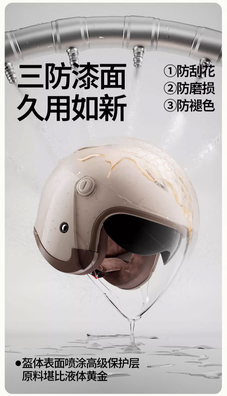 两只小蜜蜂3C认证摩托车头盔男女电瓶电动车机车冬季防雾保暖四季安全3/4盔 卡其色【防雾双镜】A类3C 均码【头围54-60cm】
