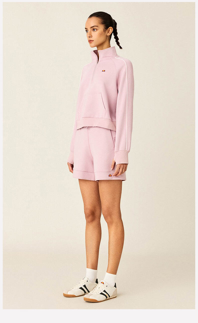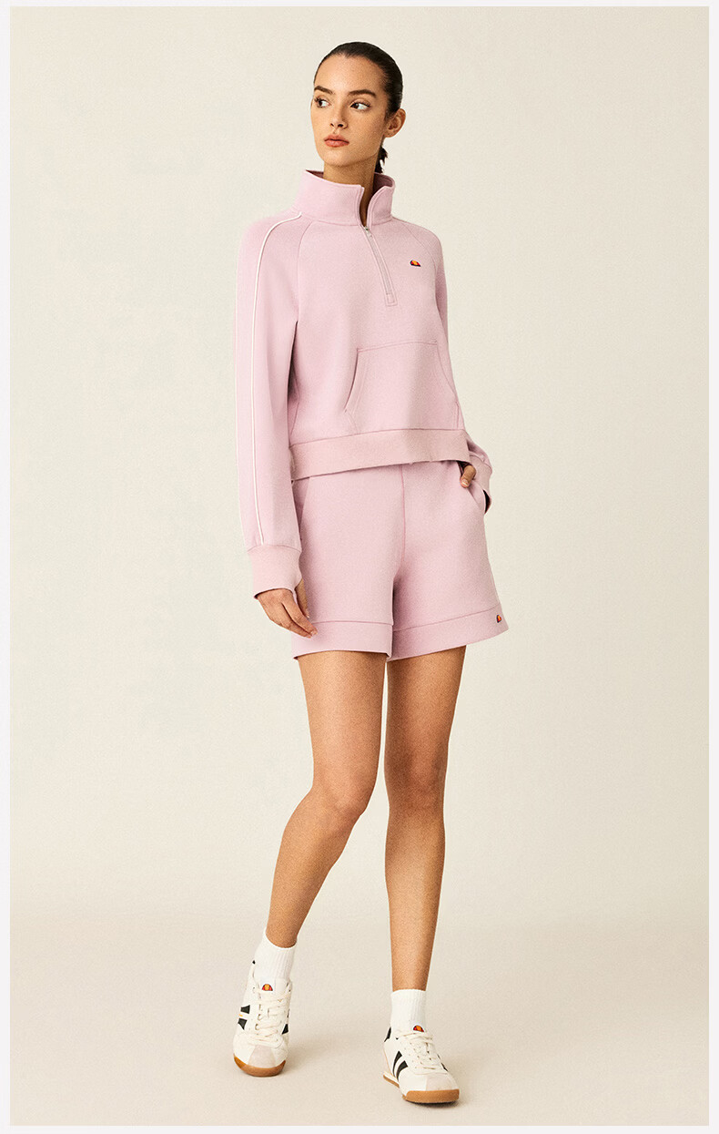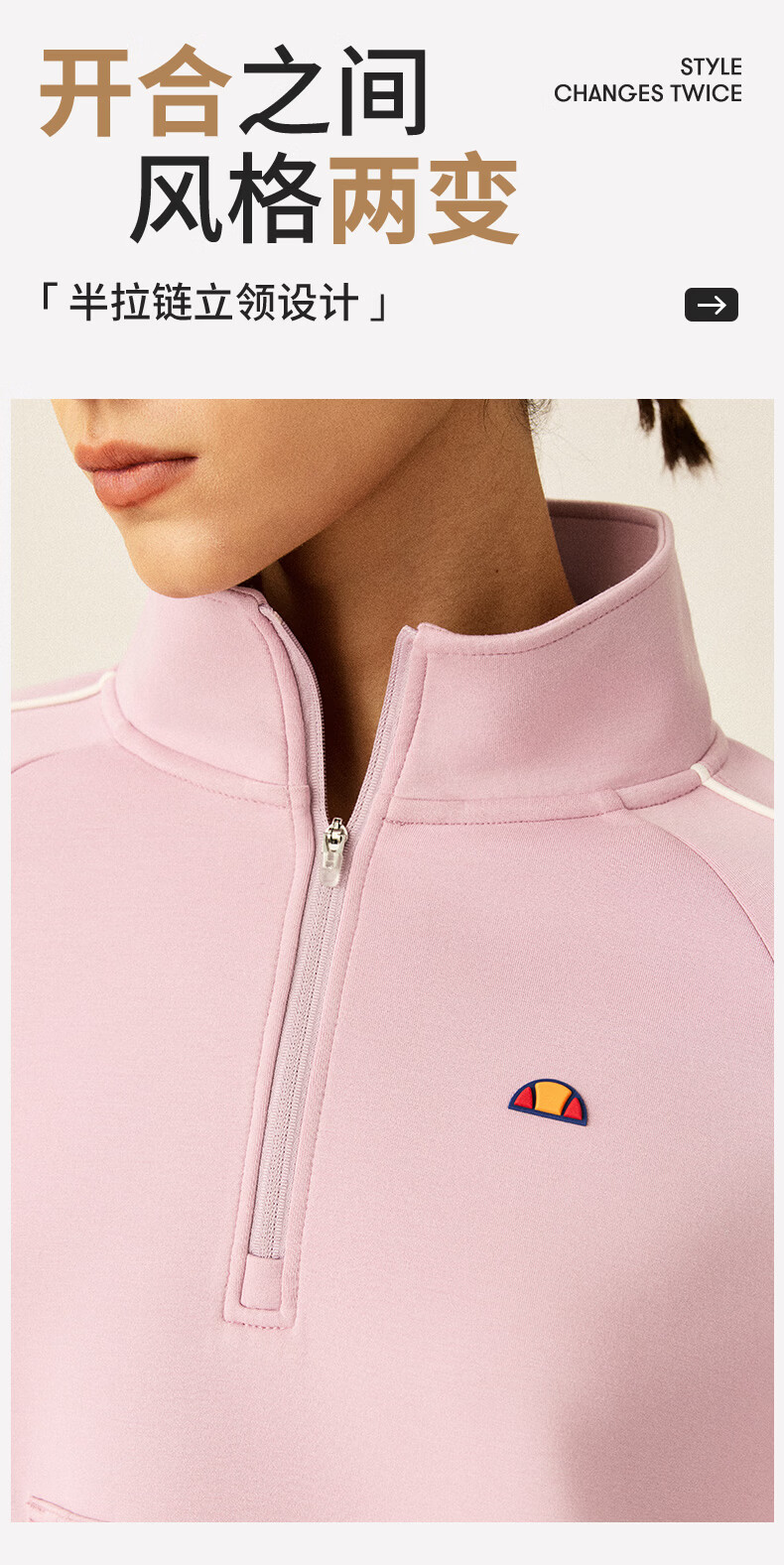 ellesse小贝壳26春季新品网球服显瘦半拉链卫衣运动上衣外套女 粉色【新色上新】 S
