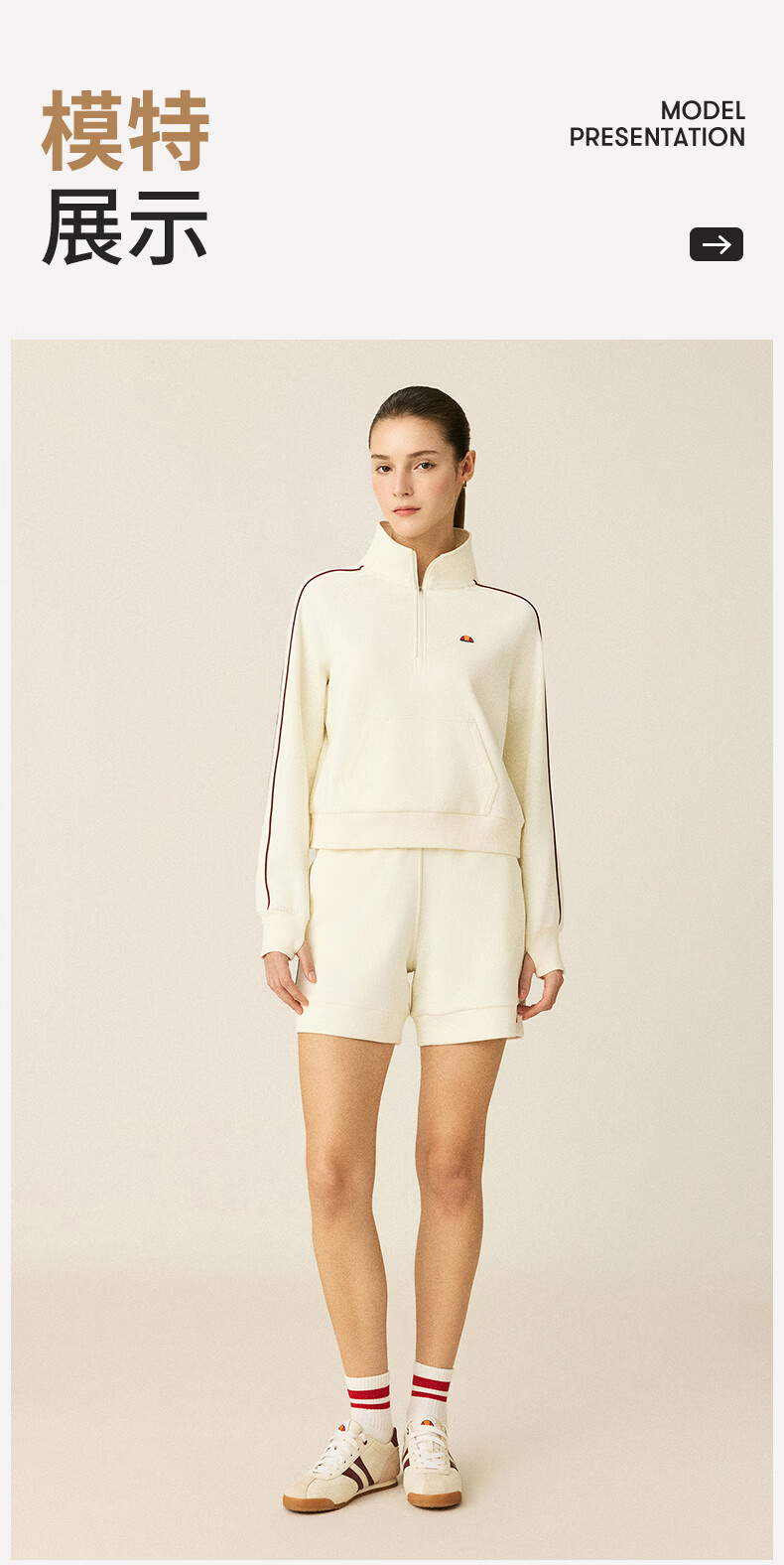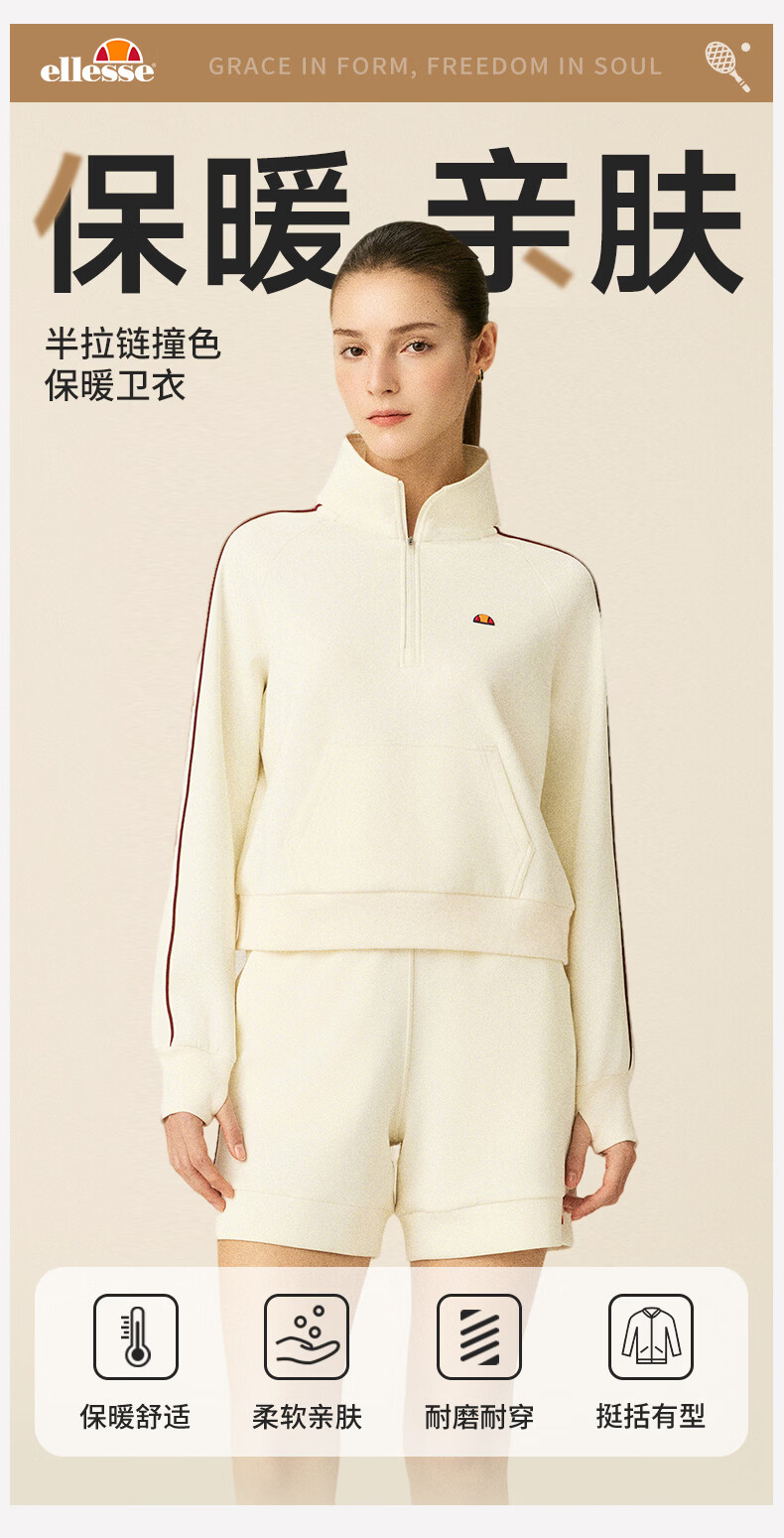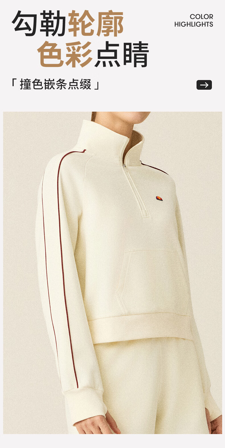 ellesse小贝壳26春季新品网球服显瘦半拉链卫衣运动上衣外套女 粉色【新色上新】 S
