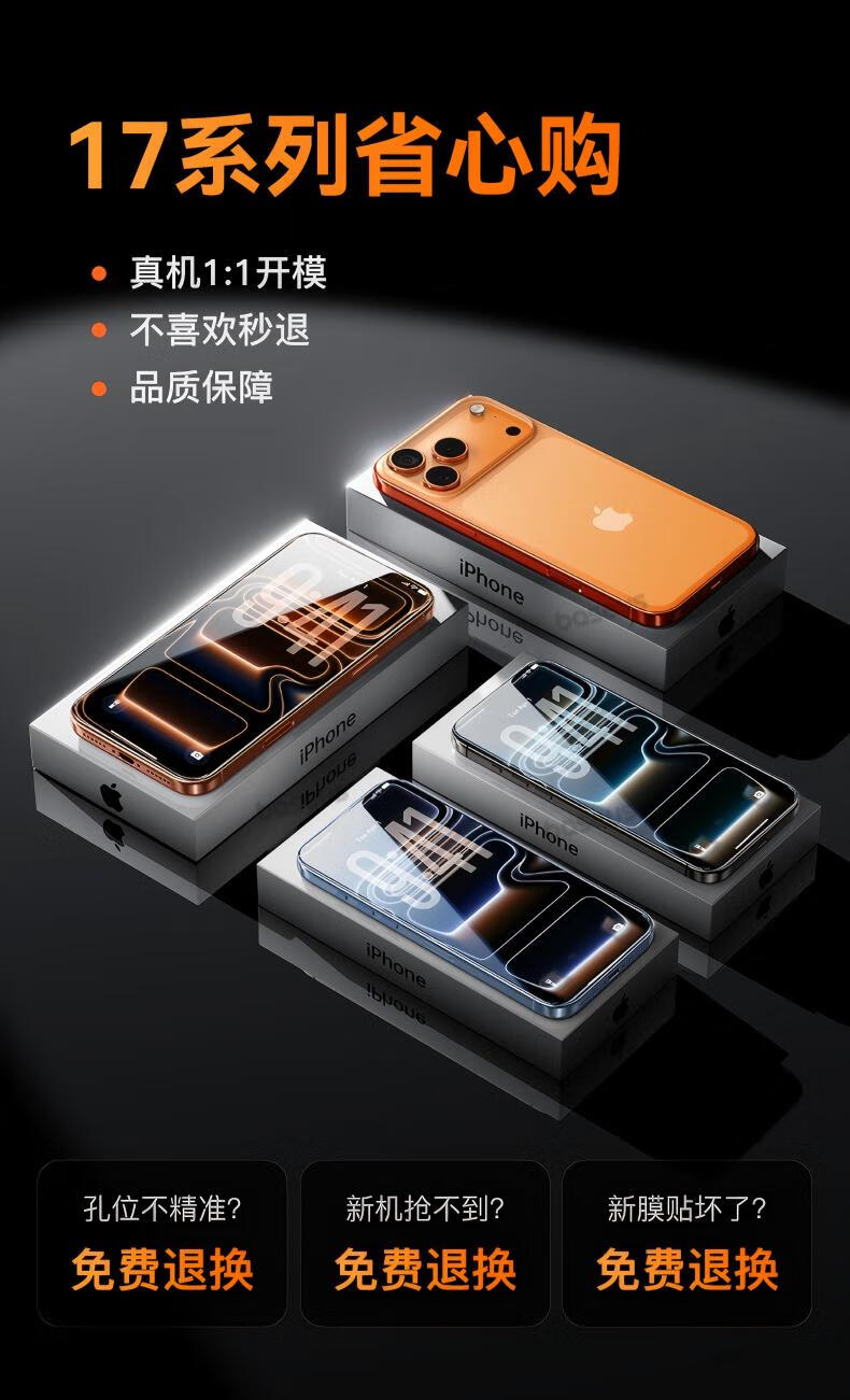 倍思【AR抗反光+康宁玻璃】适用iPhone17Promax钢化膜苹果17promax手机膜康宁膜全覆盖防摔指纹无尘仓