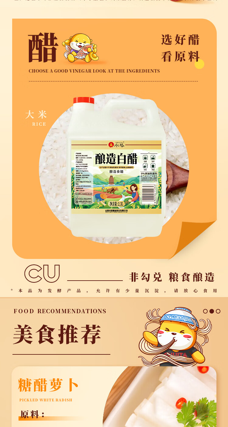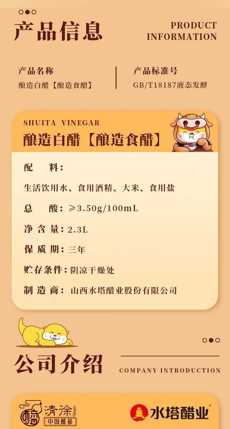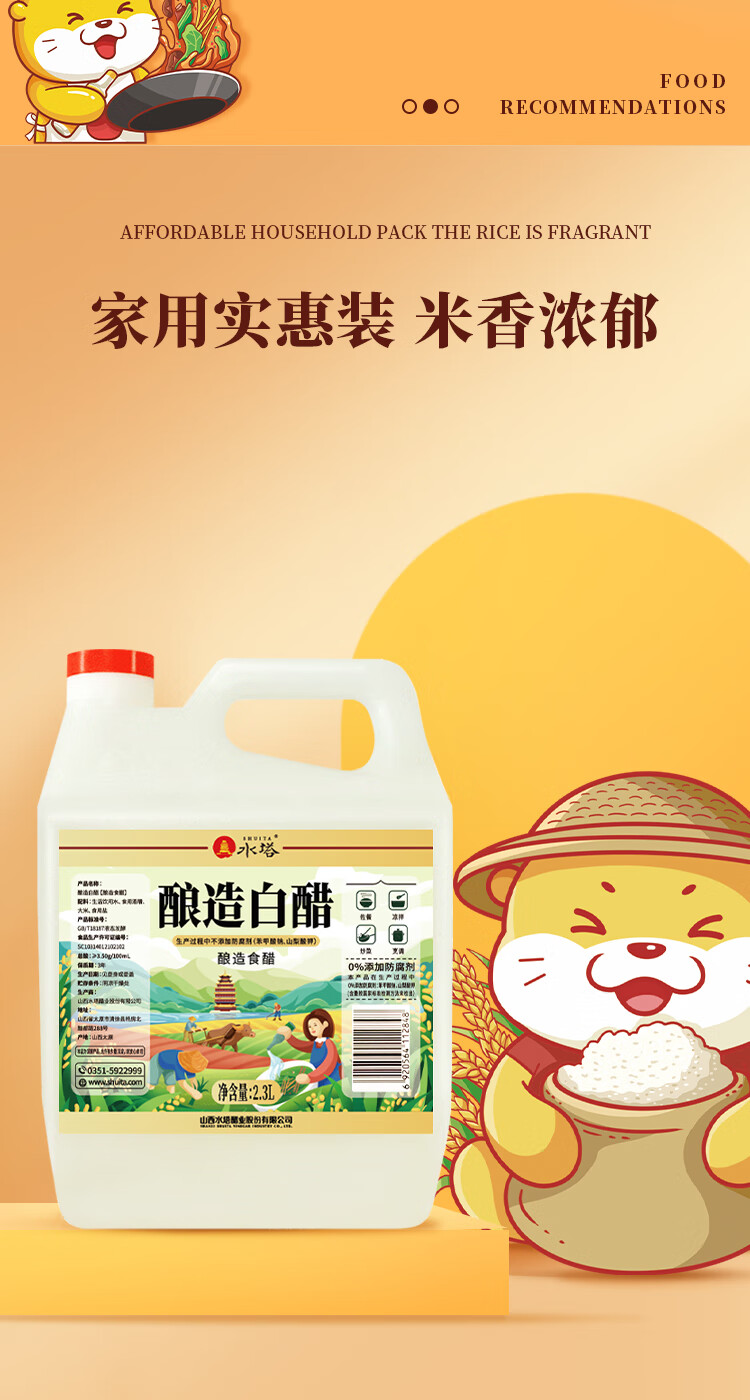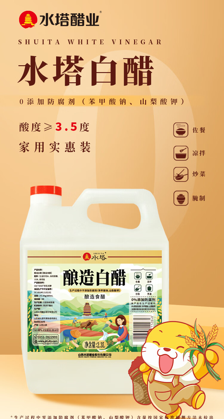 水塔2.3L3.5度酿造白醋【山西醋】家用食醋食用白醋凉拌调味腌制