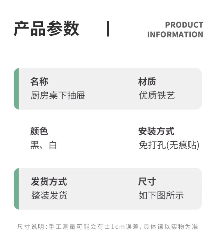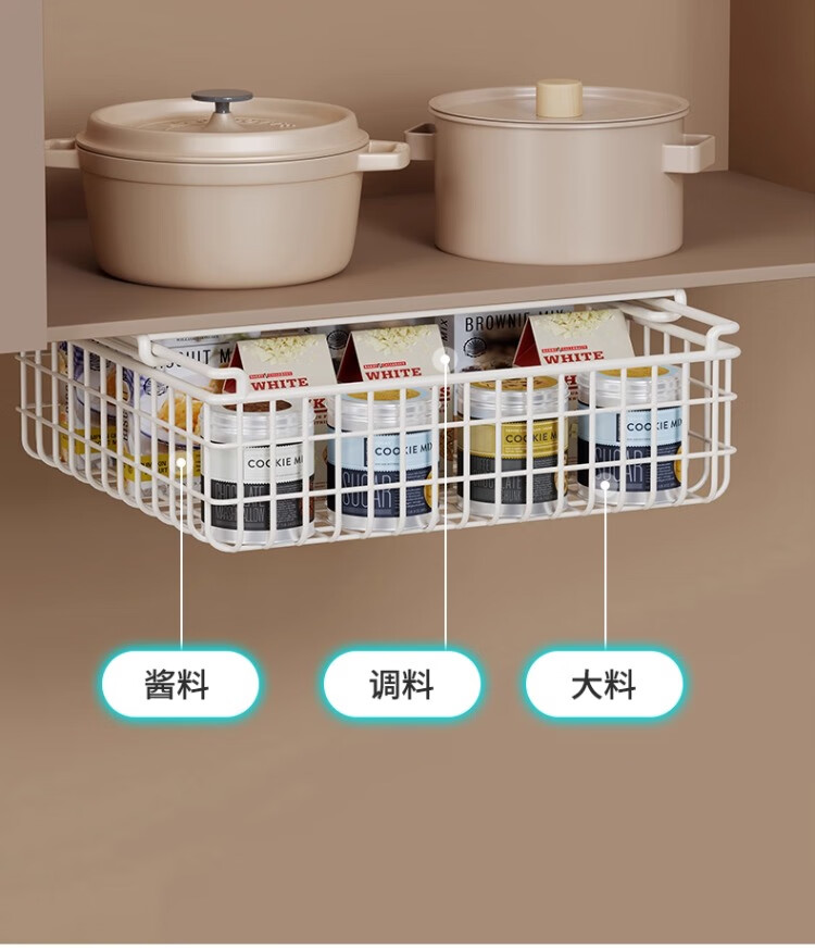 尔思家厨房调料置物架多功能收纳架橱柜下挂架柜内分层架夹缝免打孔一排 白色大号