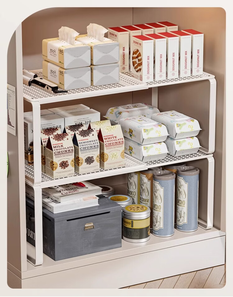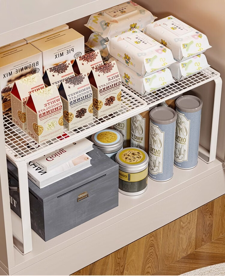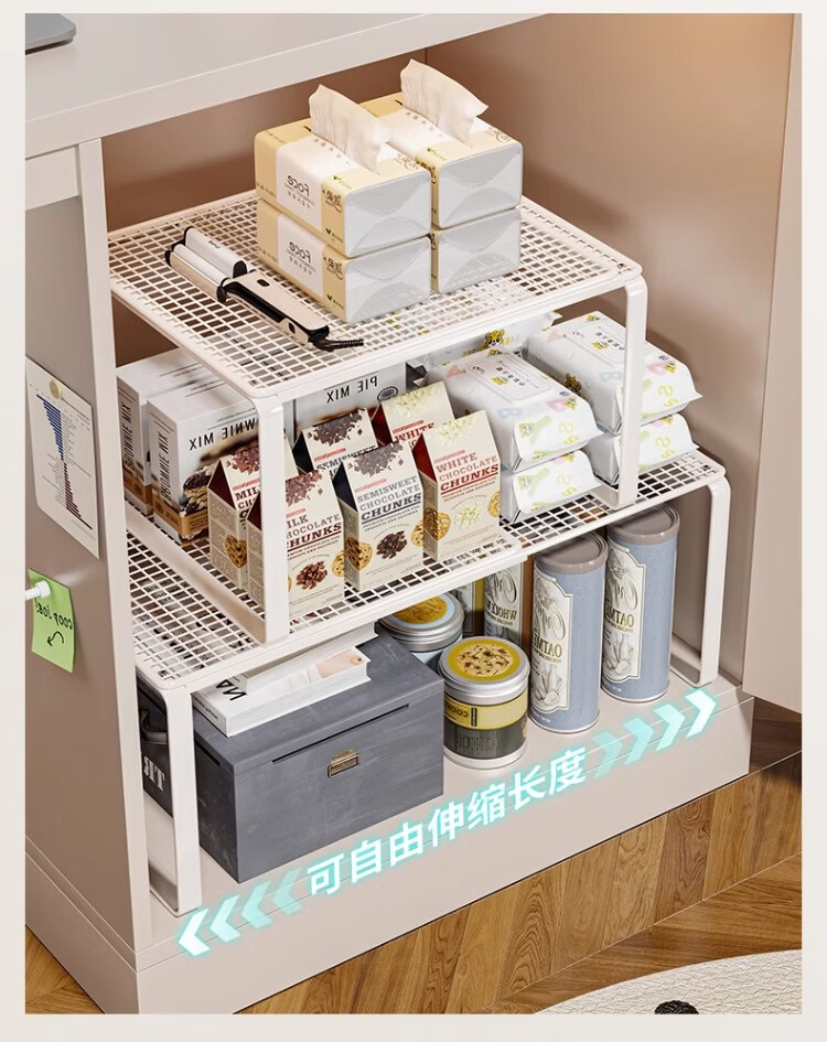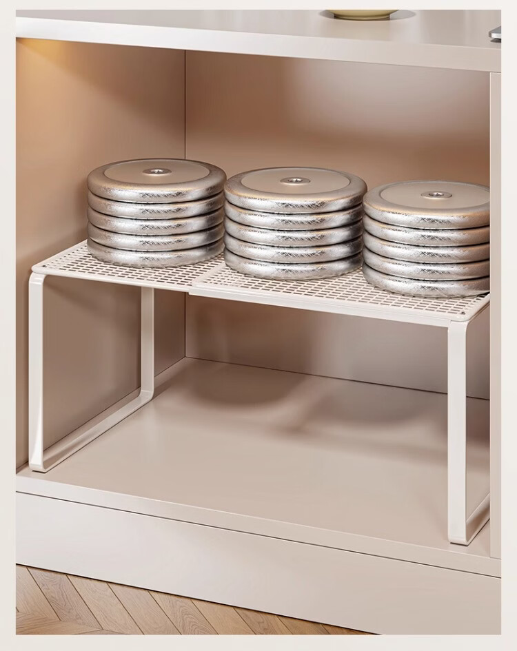 尔思家厨房多功能置物架不锈钢橱柜锅架多层收纳架橱柜内置可伸缩分层架 【可伸缩】长38-62 宽35 高31 白色单层