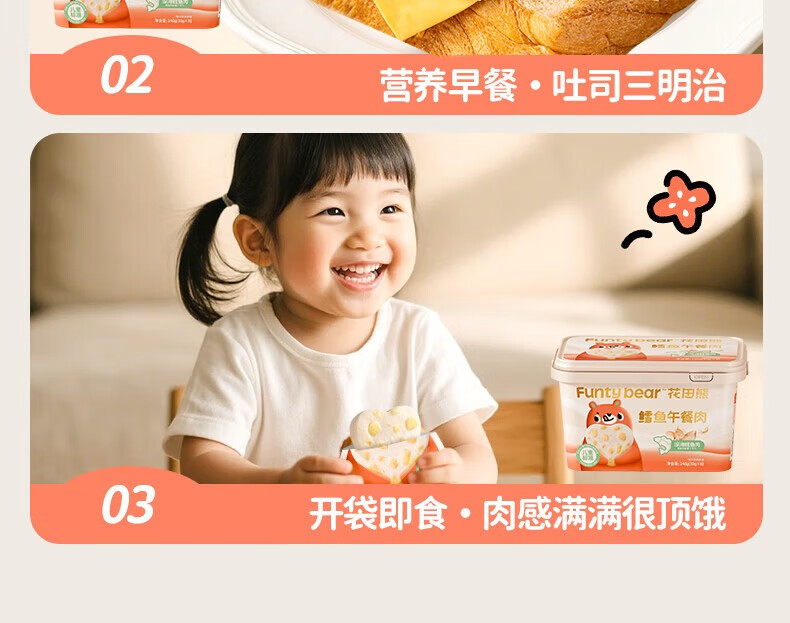 花田熊鳕鱼午餐肉火腿三明治香肠儿童无添加白砂糖早餐小包装休闲零食 【会员专享】鳕鱼午餐肉*4片