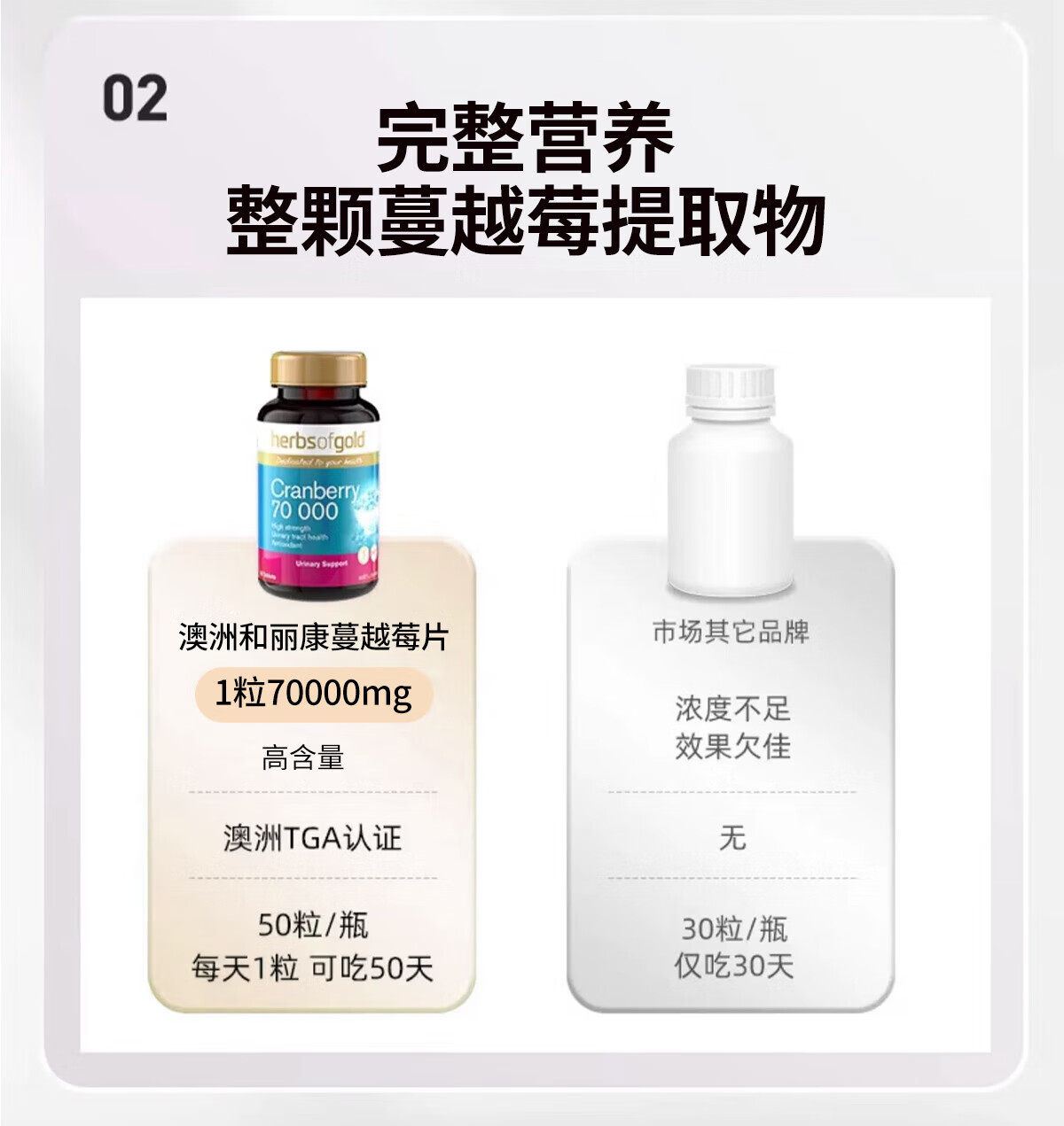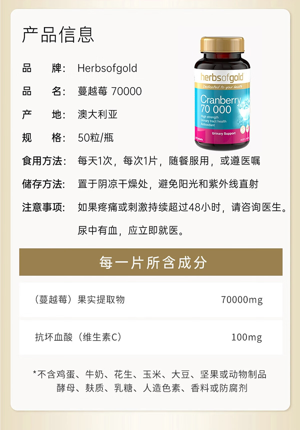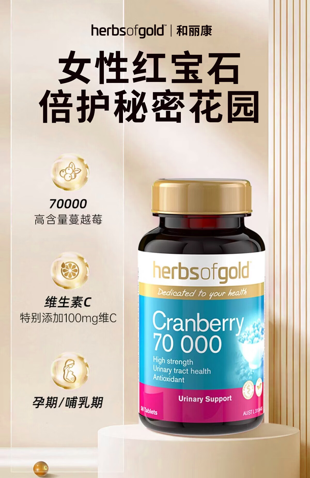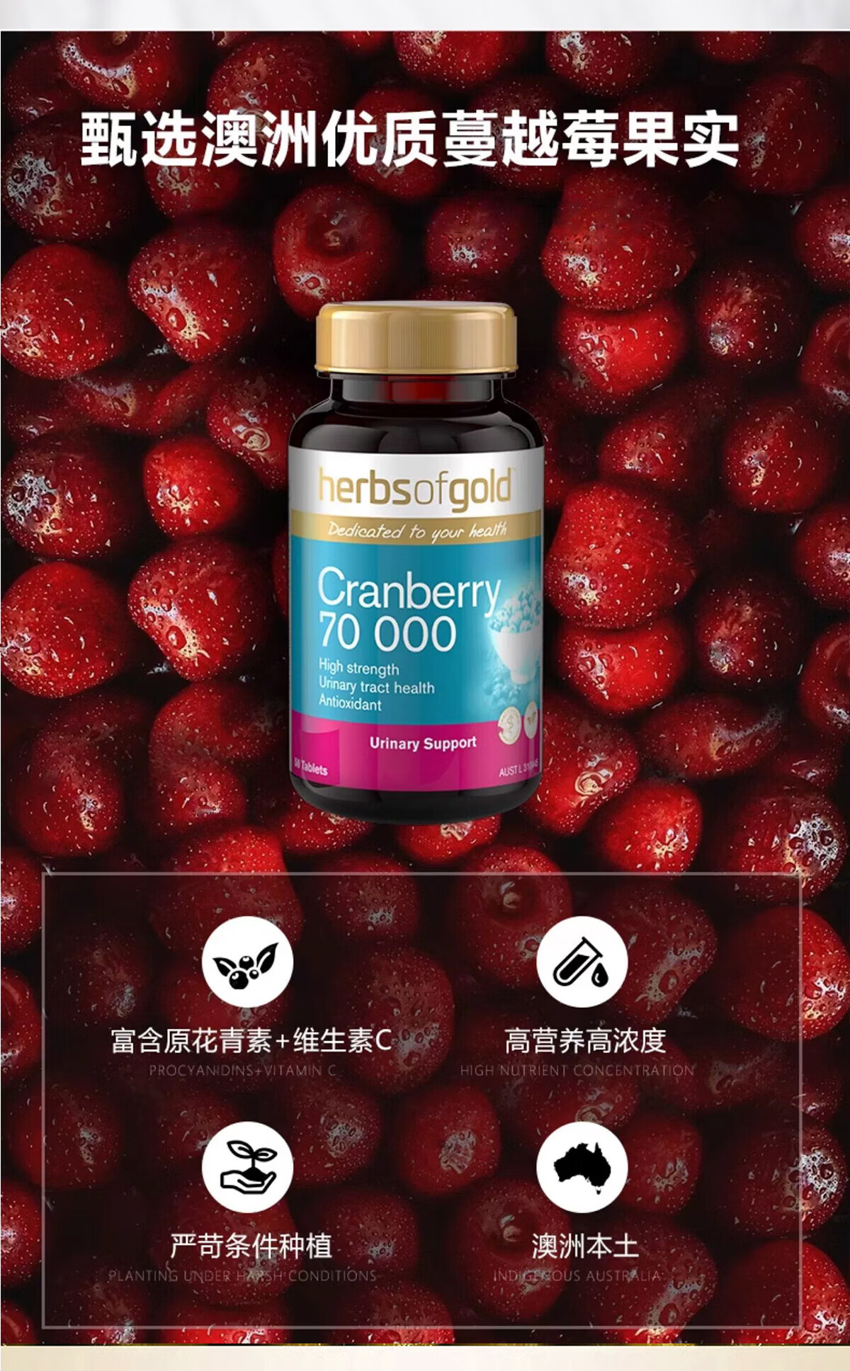 herbs of gold蔓越莓胶囊 70000mg高含量特添VC 泌尿系统感染妇科炎症 澳洲进口 【50粒】蔓越莓胶囊