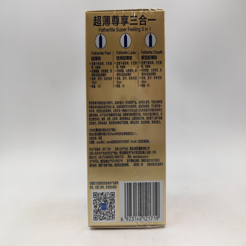 durex杜蕾斯feel尊享三合一润滑安全套 尊享三合一【18只】