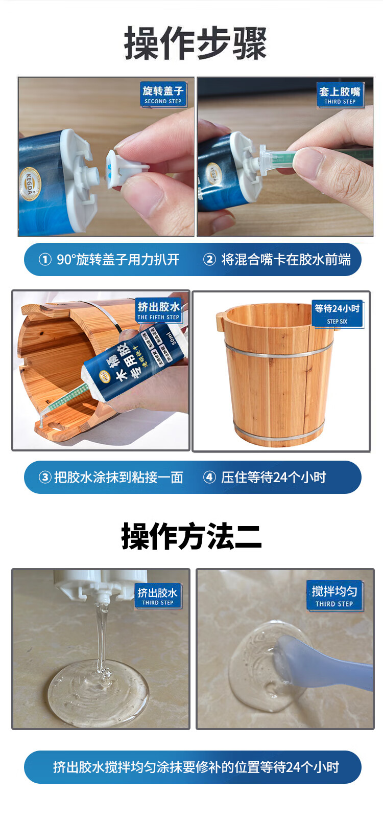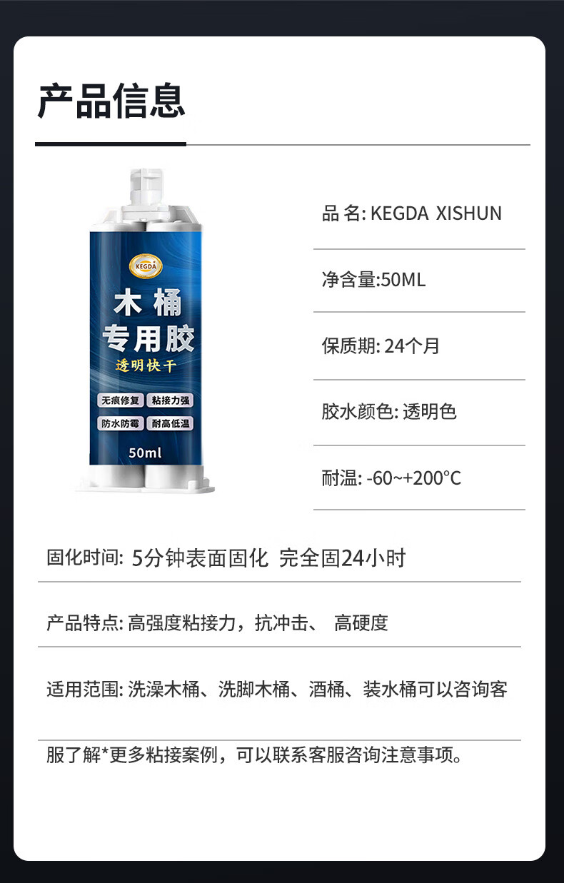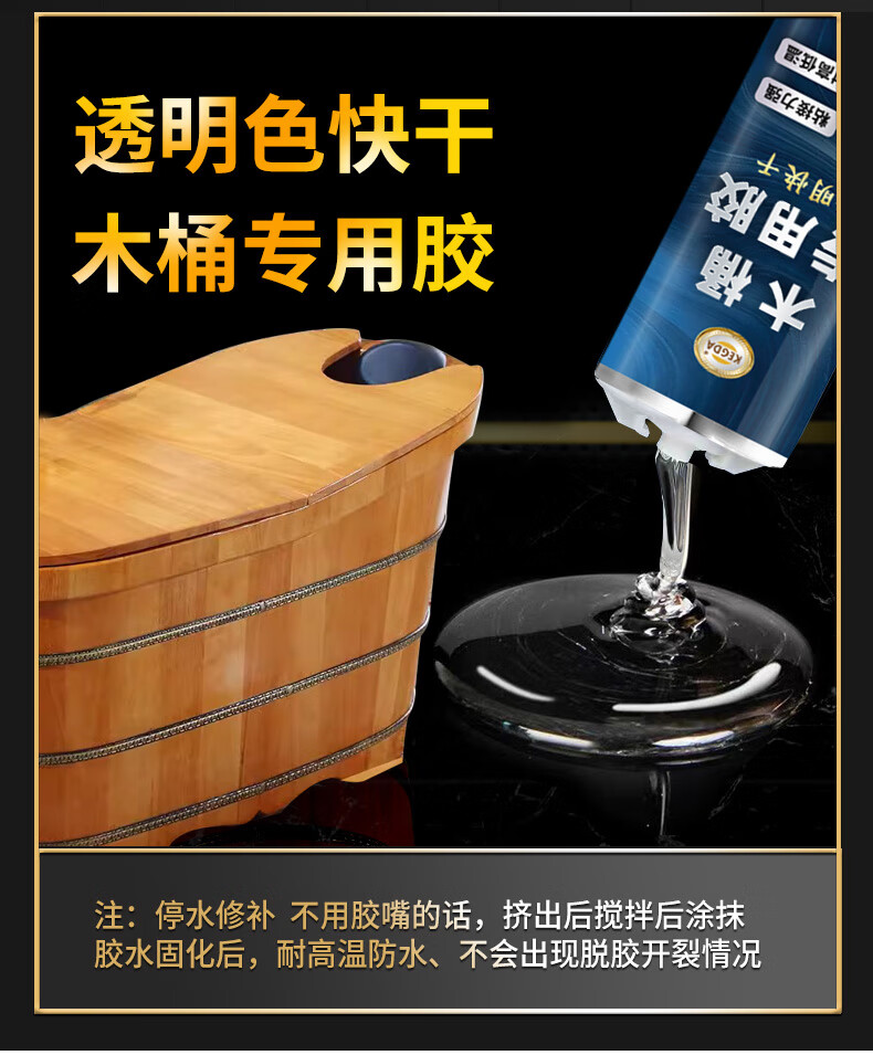 KEGDA木桶补漏胶水填补木桶修补粘泡脚木粉屑浴盆洗脚盆开裂漏水浴缸洗 木桶专用透明色胶1支装