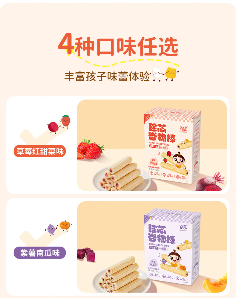 婴享无麸质夹芯谷物棒儿童健康磨牙饼干敏宝零食送婴幼儿宝宝辅食食谱