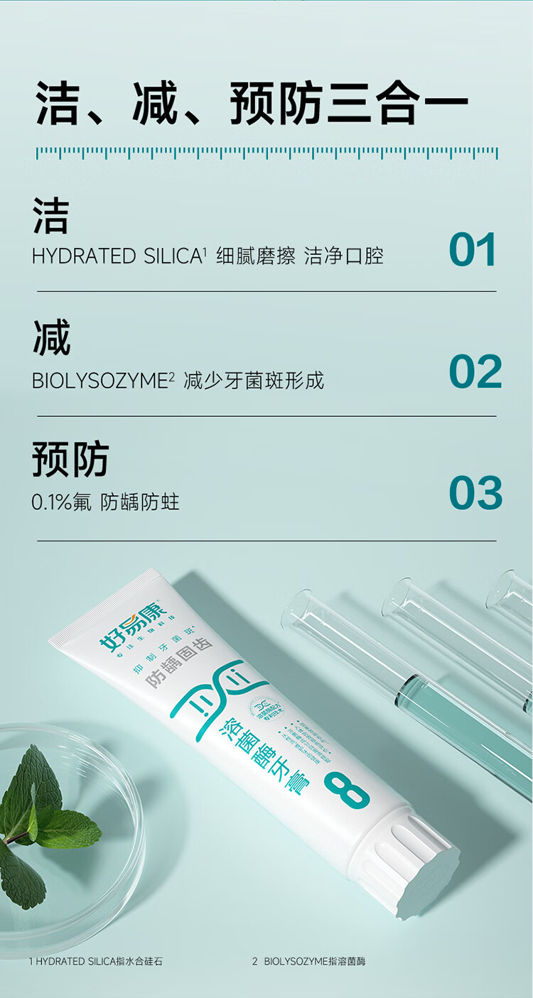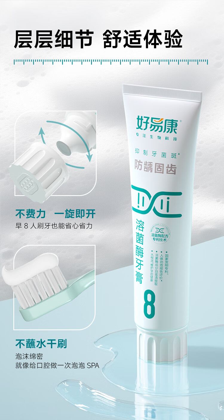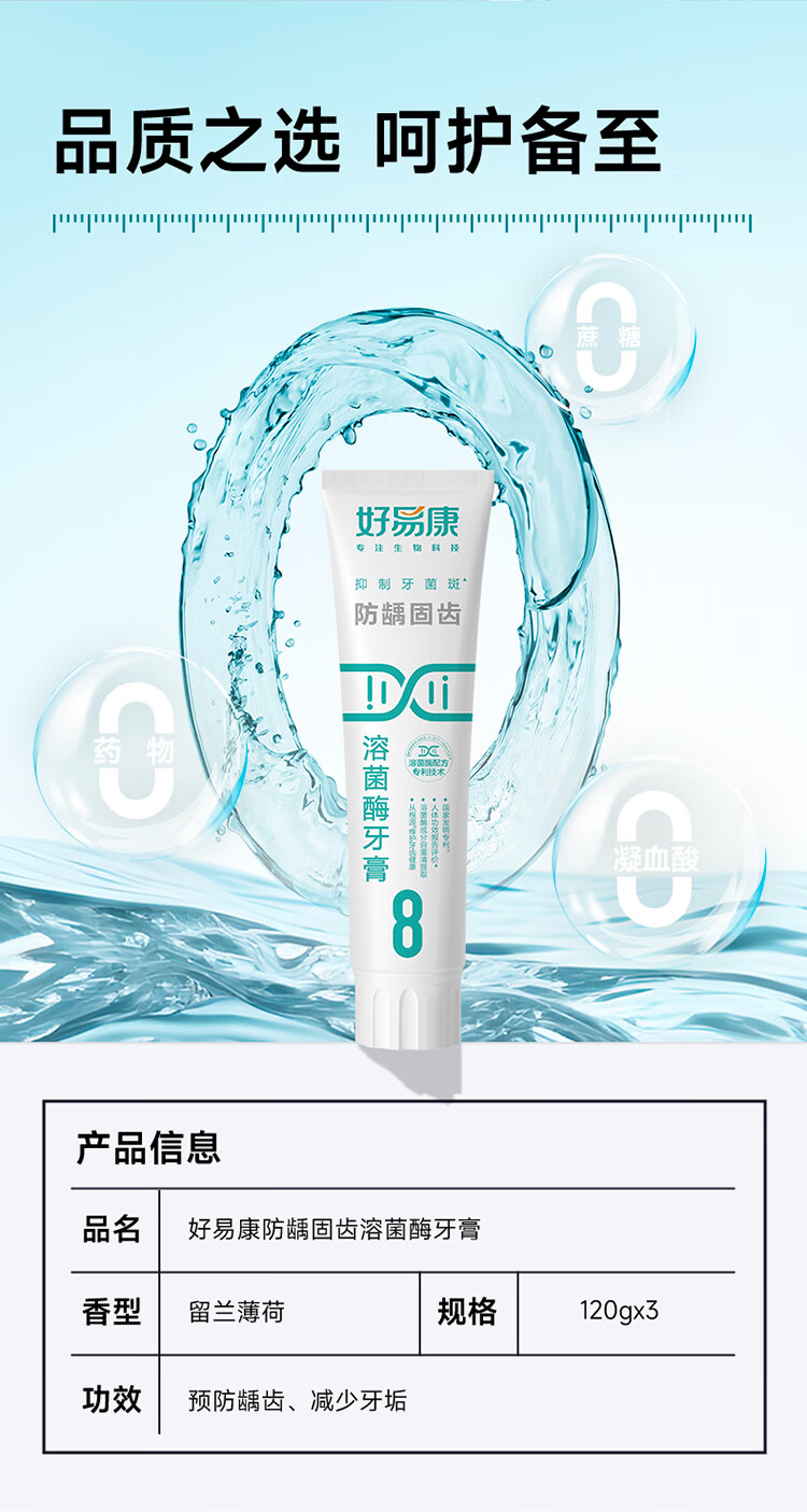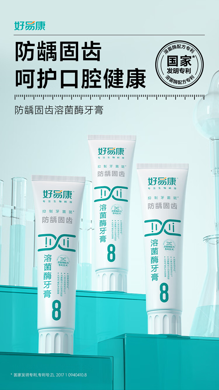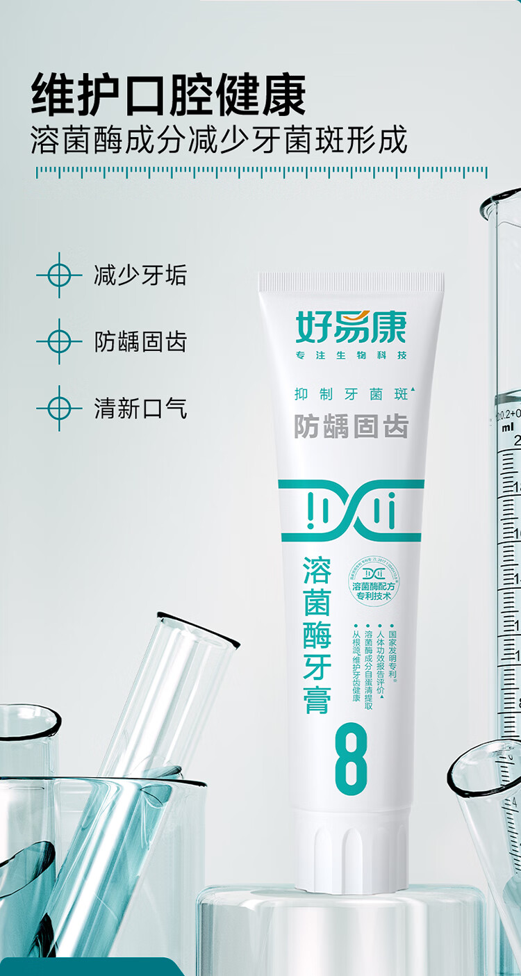 好易康溶菌酶牙膏 减少牙垢抑制牙菌斑防龋固齿口气清新 8号3支装【120g*3】
