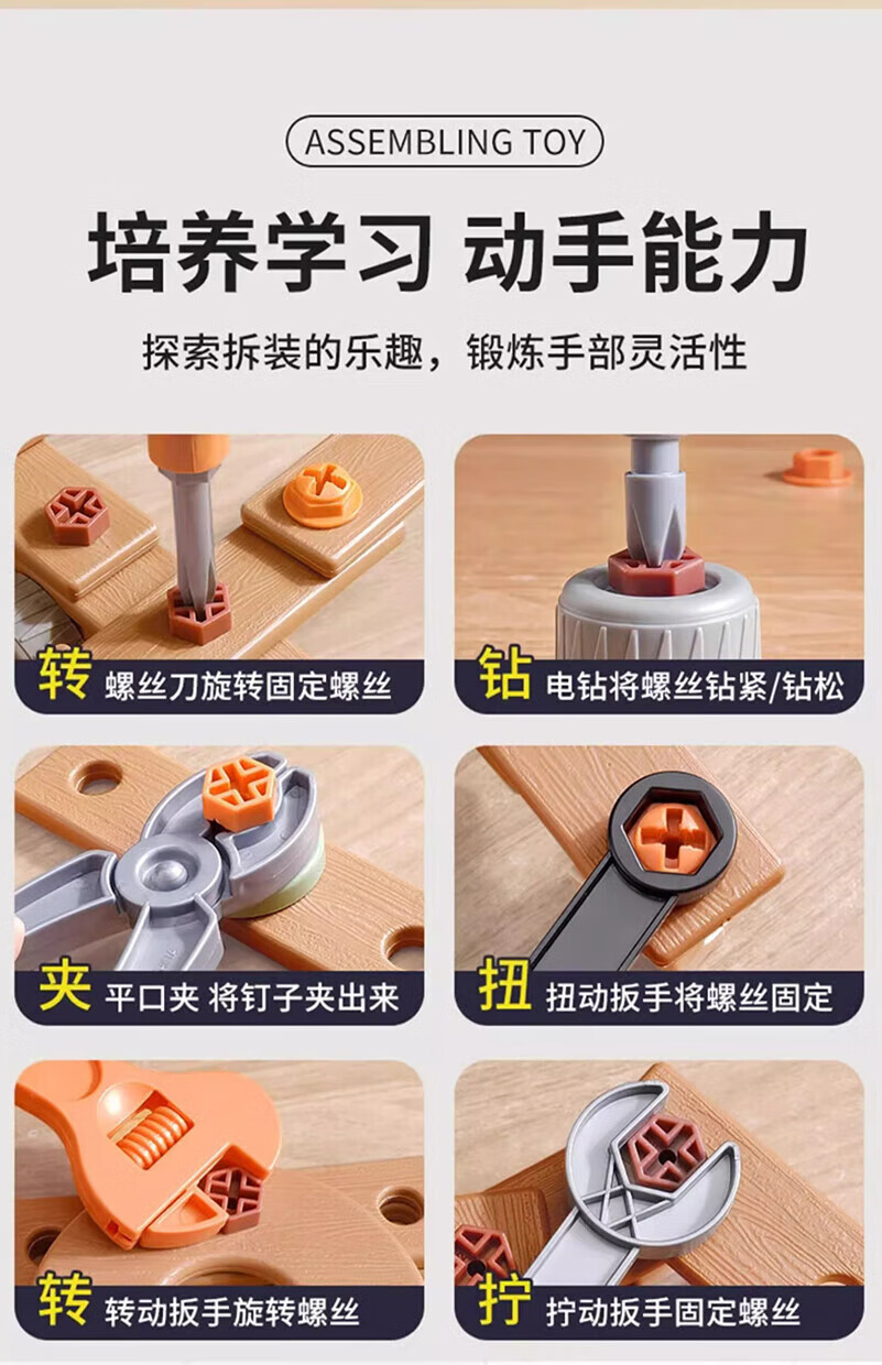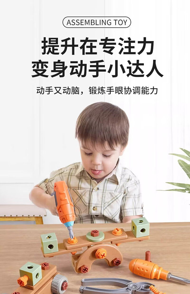 恩贝家族儿童玩具益智拧螺丝仿真工具箱全套男孩电动电钻拼装生日新年礼物