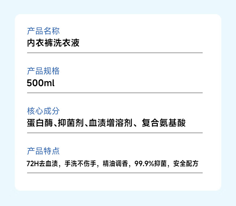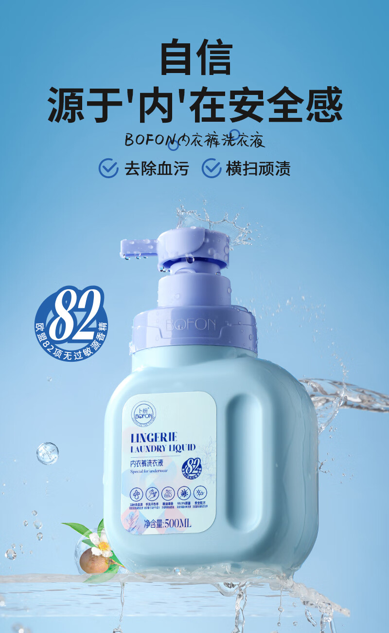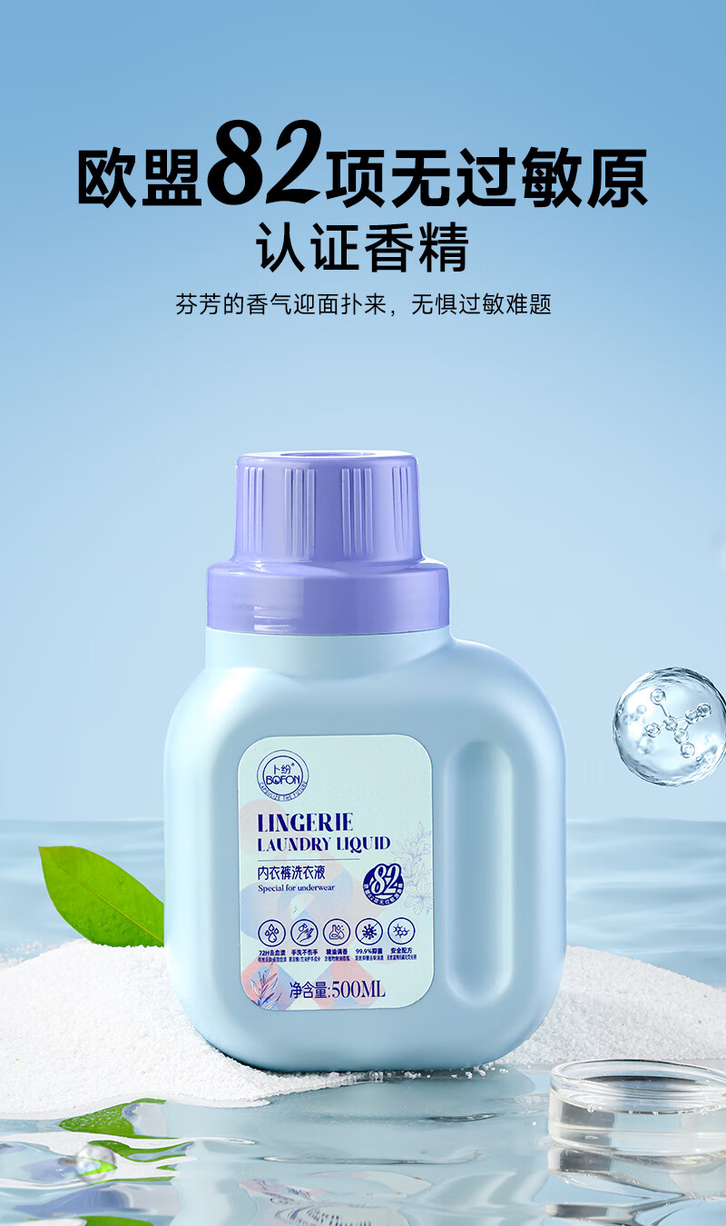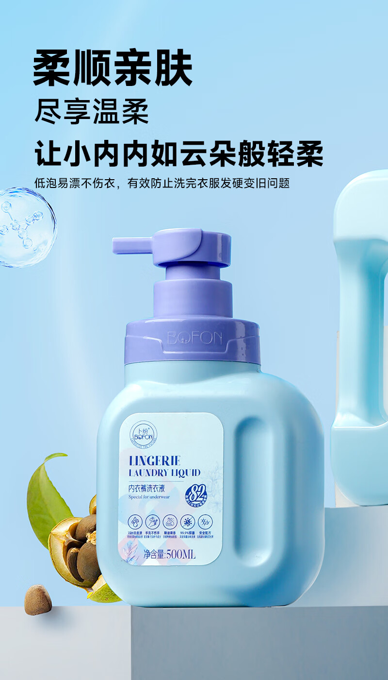 卜纷 内衣内裤洗衣液500ml 温和不伤手去污去黄抑菌去血渍免浸泡