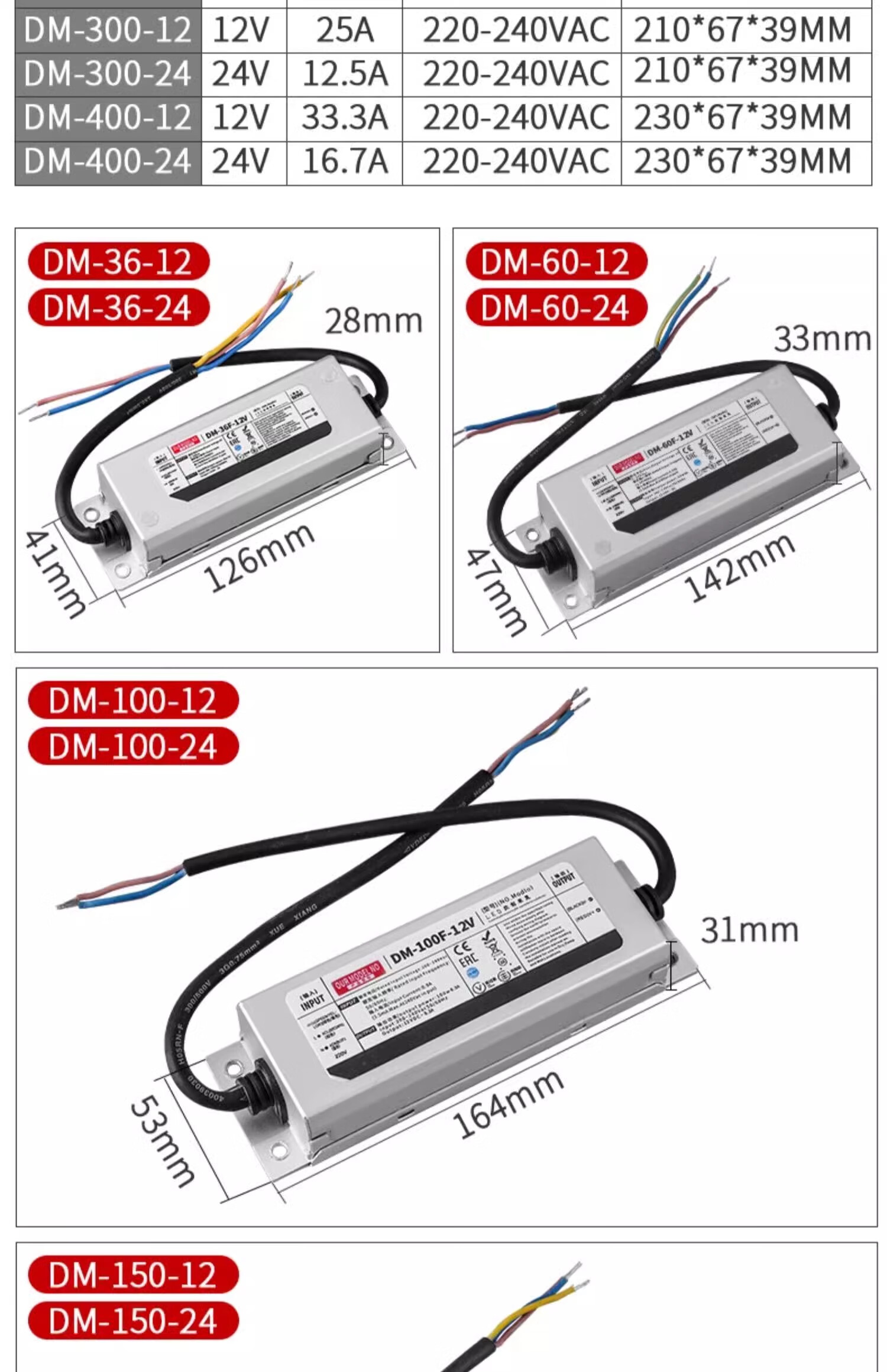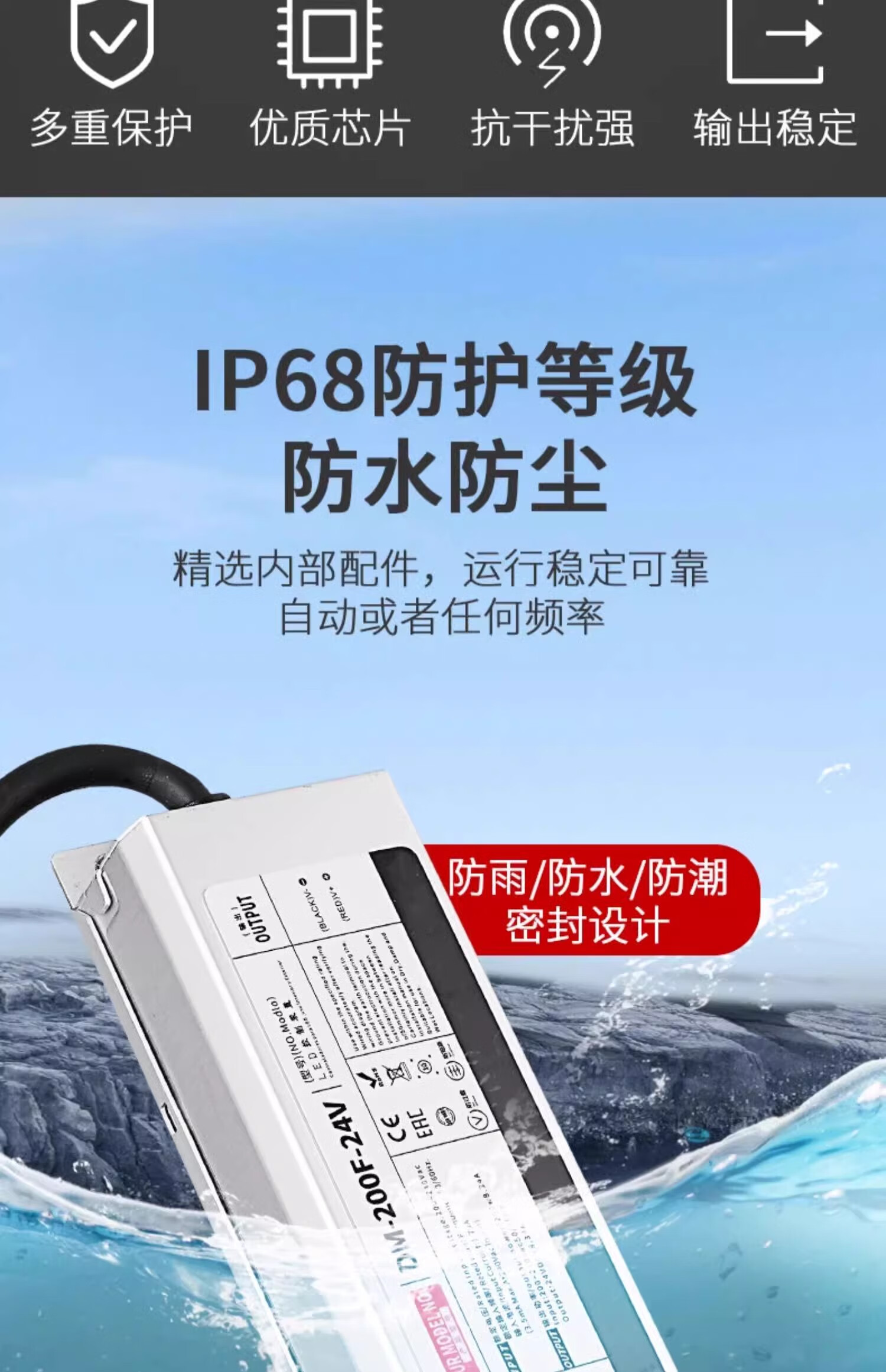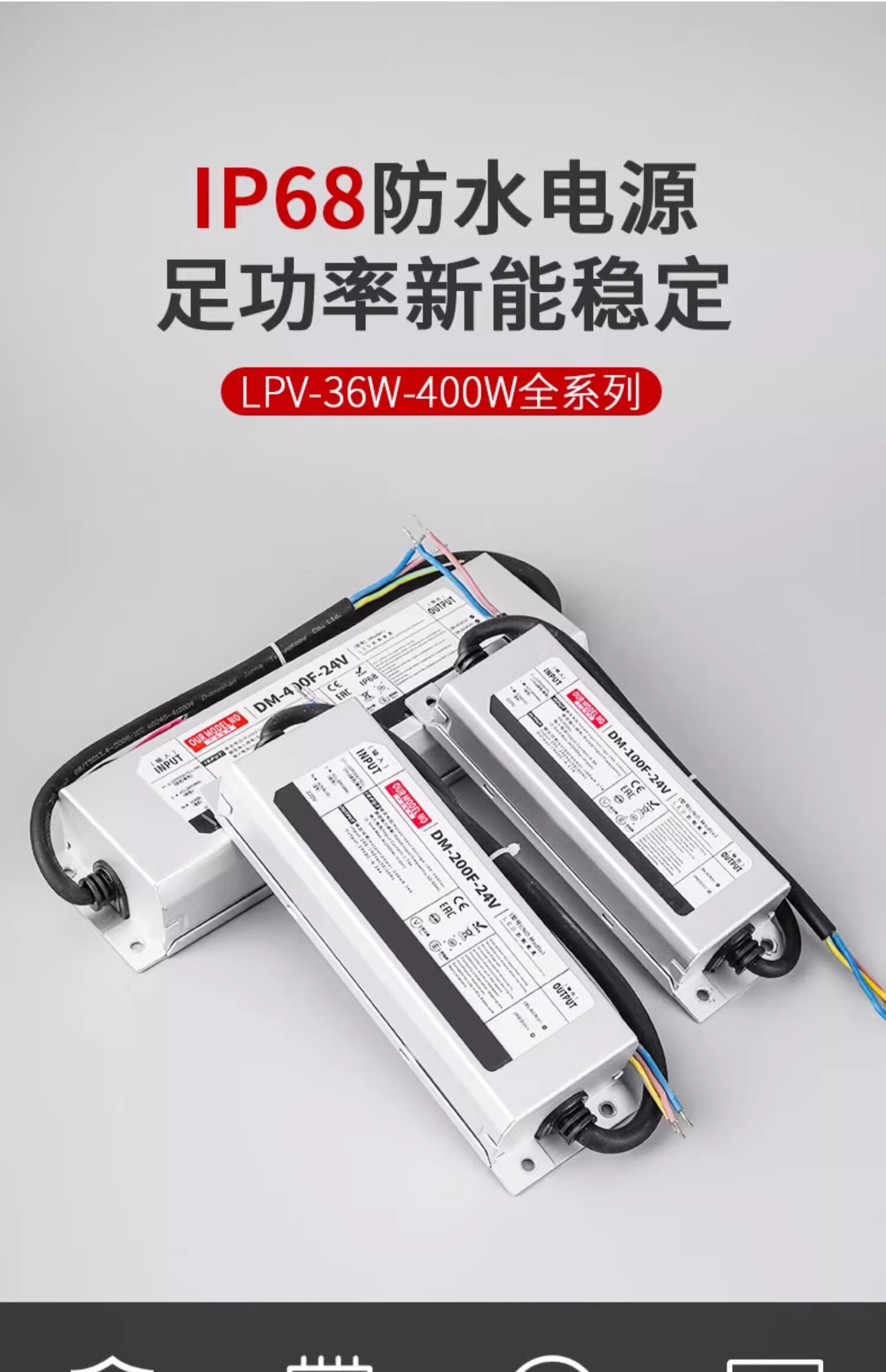 拉伯塔水下灯带低压开关电源220V转24V户外泡水LED线形灯条防水变压器 工程款【36w】IP65防水变压器