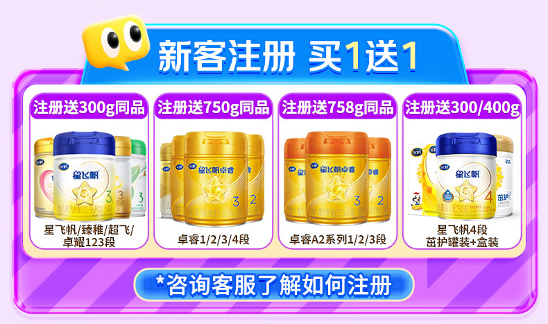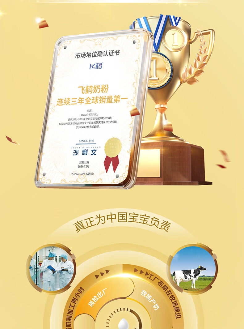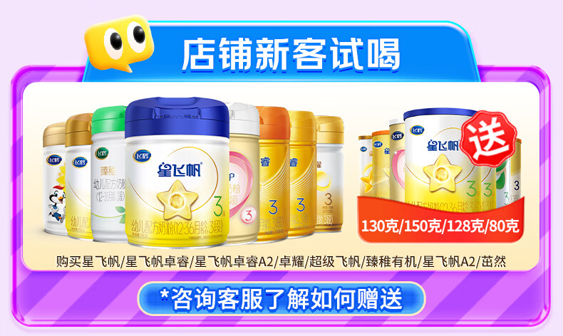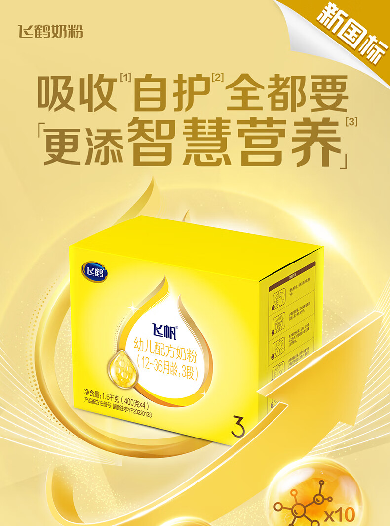 飞鹤飞帆呵护3段婴幼儿配方奶粉1600克四联包(1-3岁适用) 4盒 (入会享会员福利)