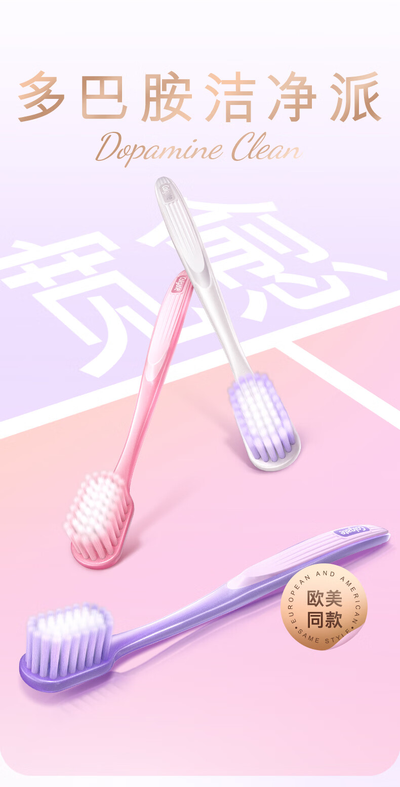 高露洁(Colgate)宽密柔多巴胺宽头牙刷4支 超软毛成人牙刷小头男士女士敏感牙龈