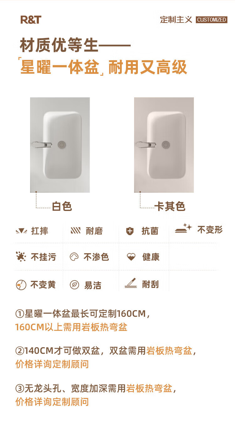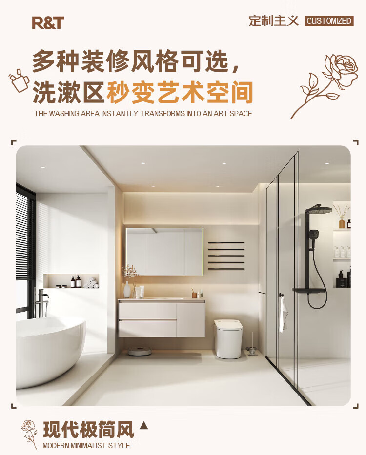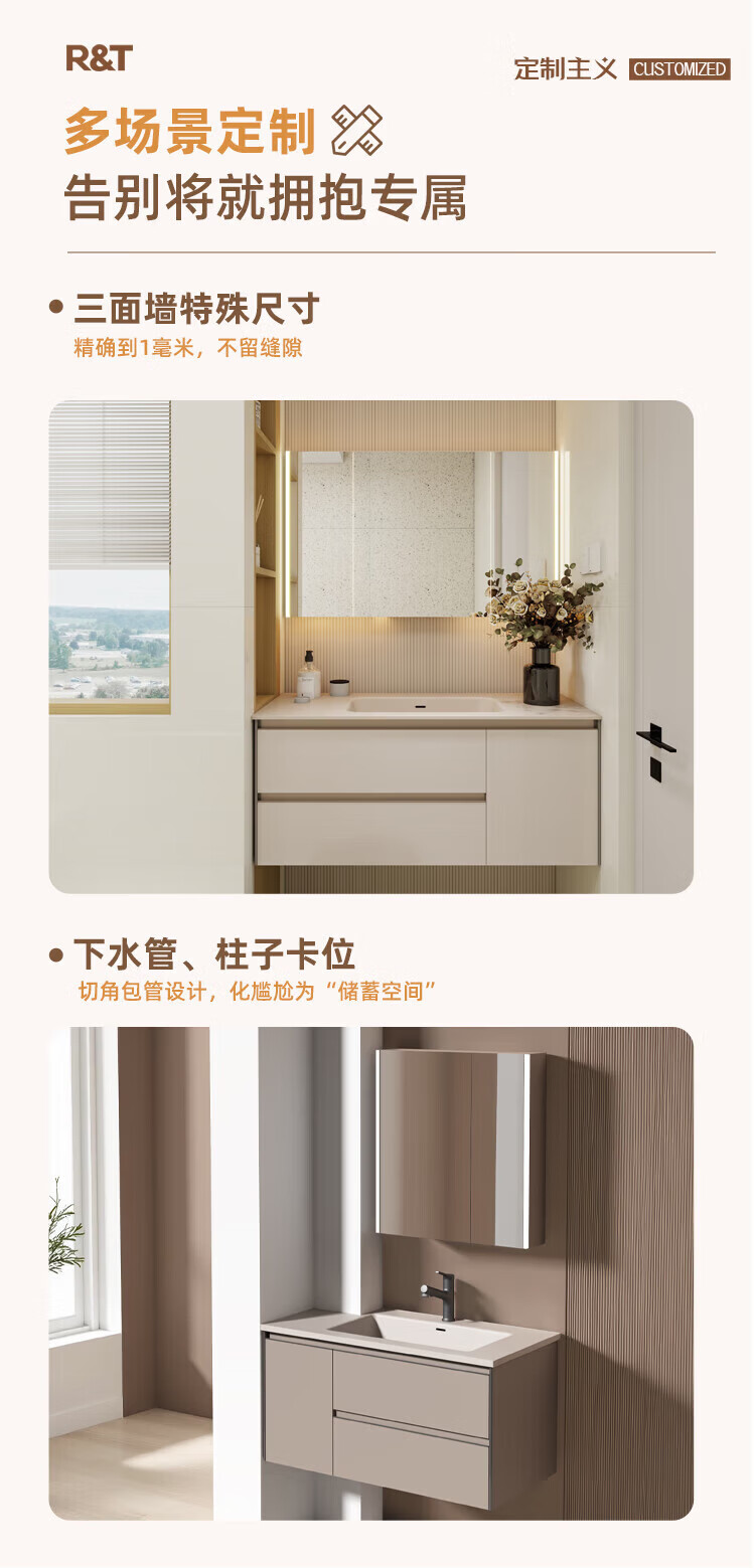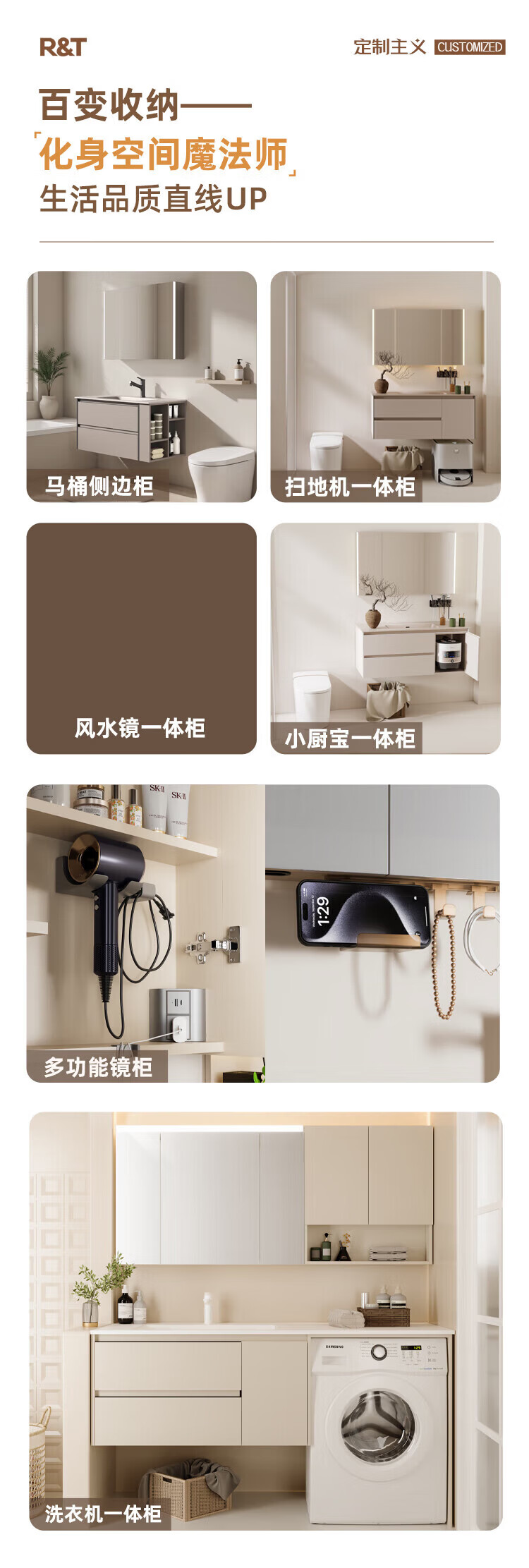 瑞尔特(R&T)浴室柜定制扫地机器人星曜一体盆卫生间洗漱台定制洗脸盆柜组合