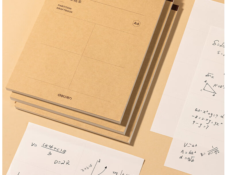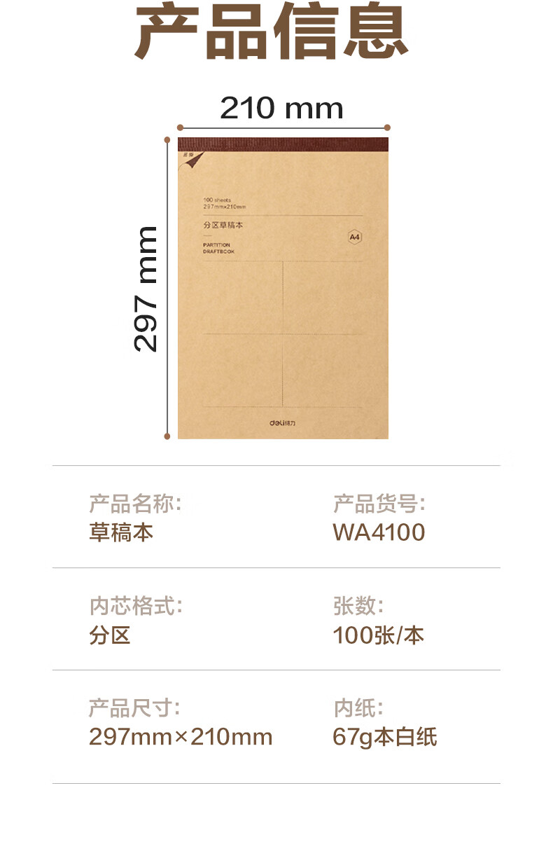 得力(deli)A4草稿本文稿本文稿纸笔记本本子大容量草稿本100张分区运算内芯 WA4100