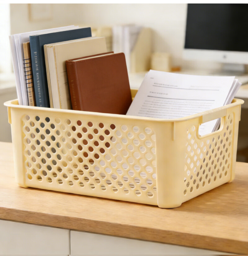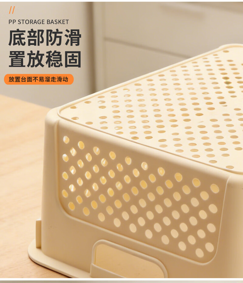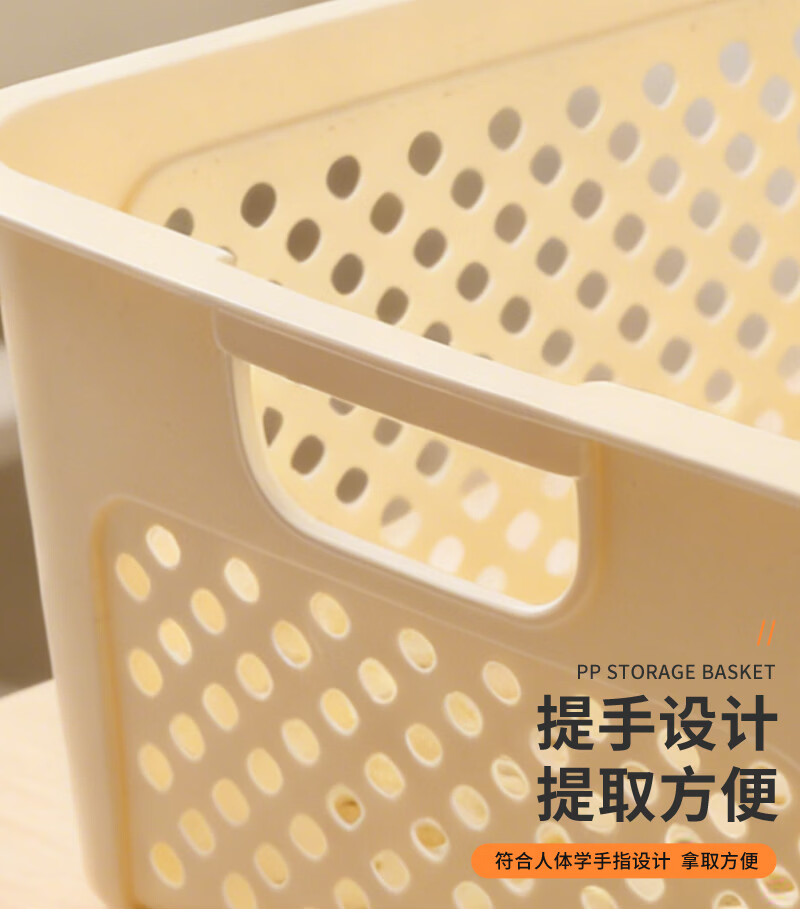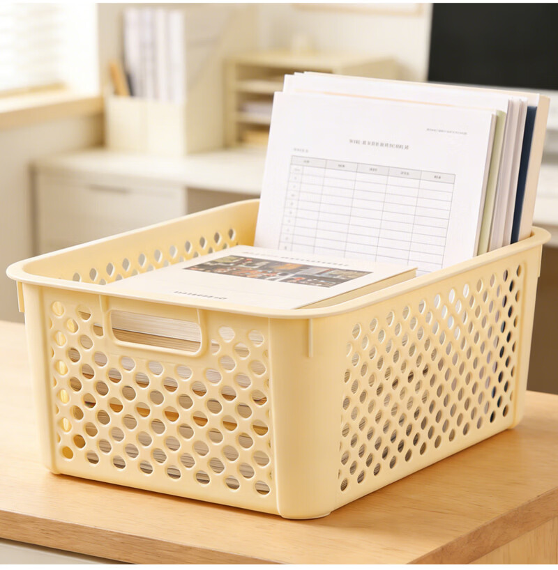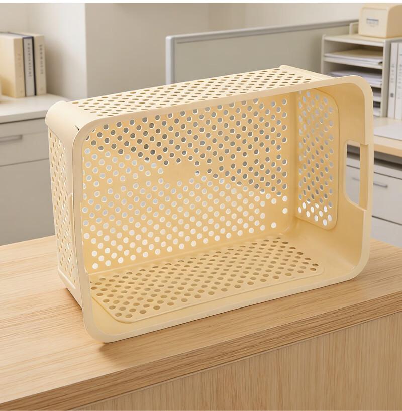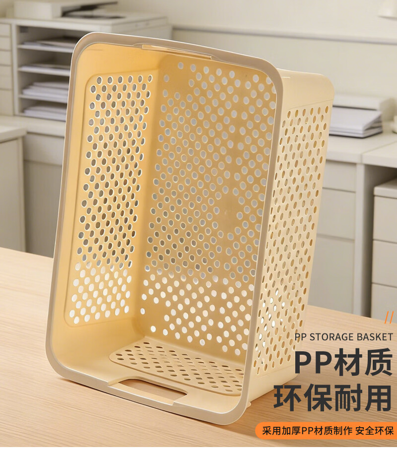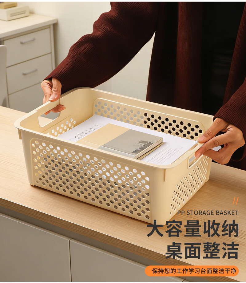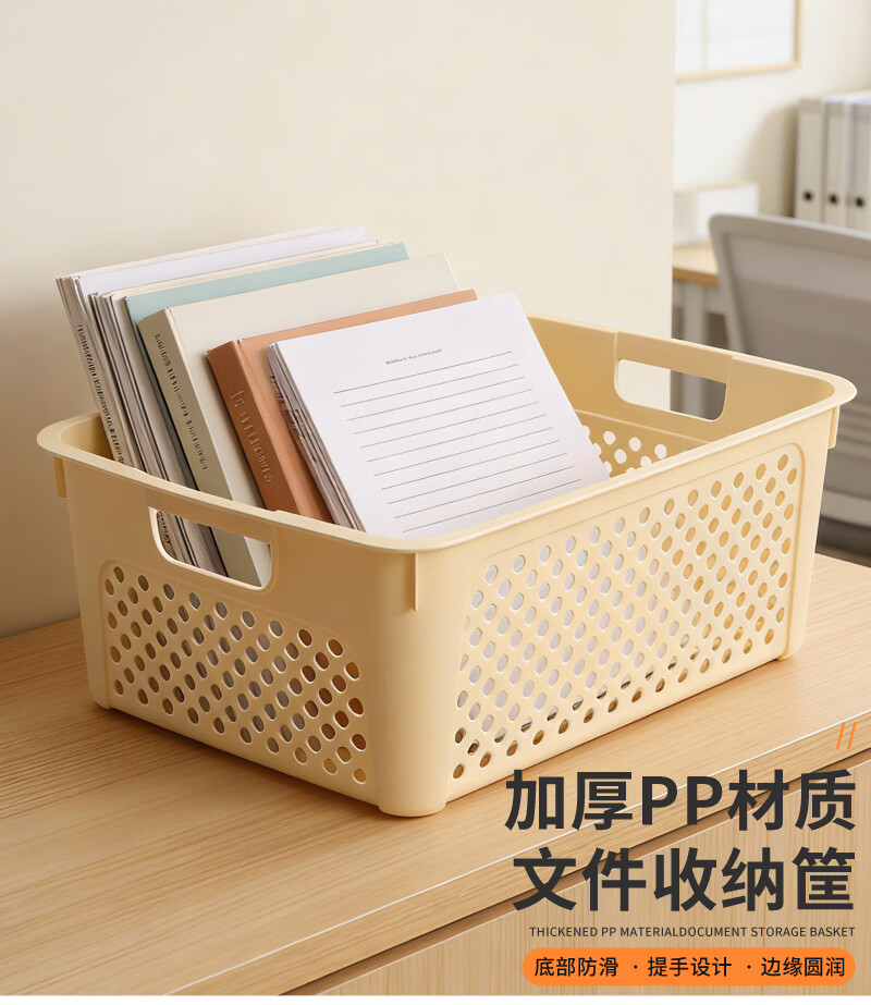 桌面收纳筐整理盒办公室书桌写字台大容量桌面收纳收纳盒书桌文具收纳篮 奶油色 特大号【23*33.5*12.5CM】1个装