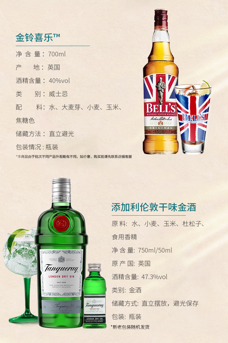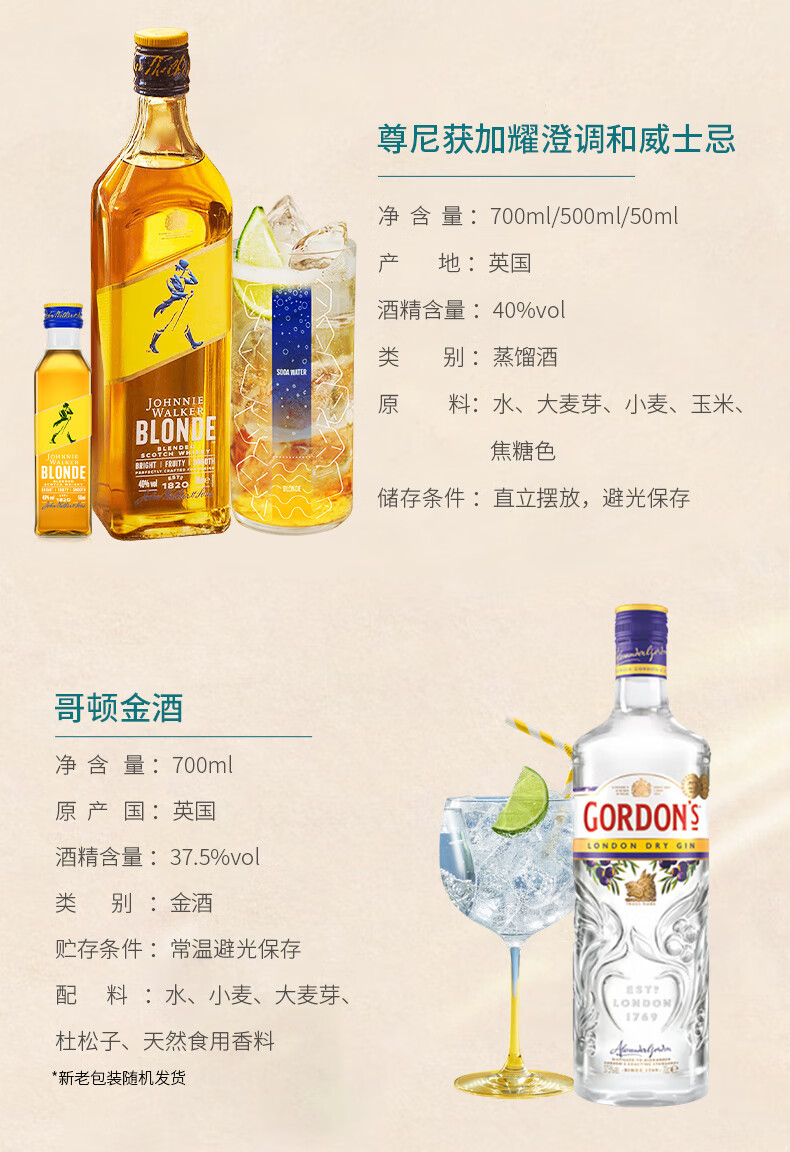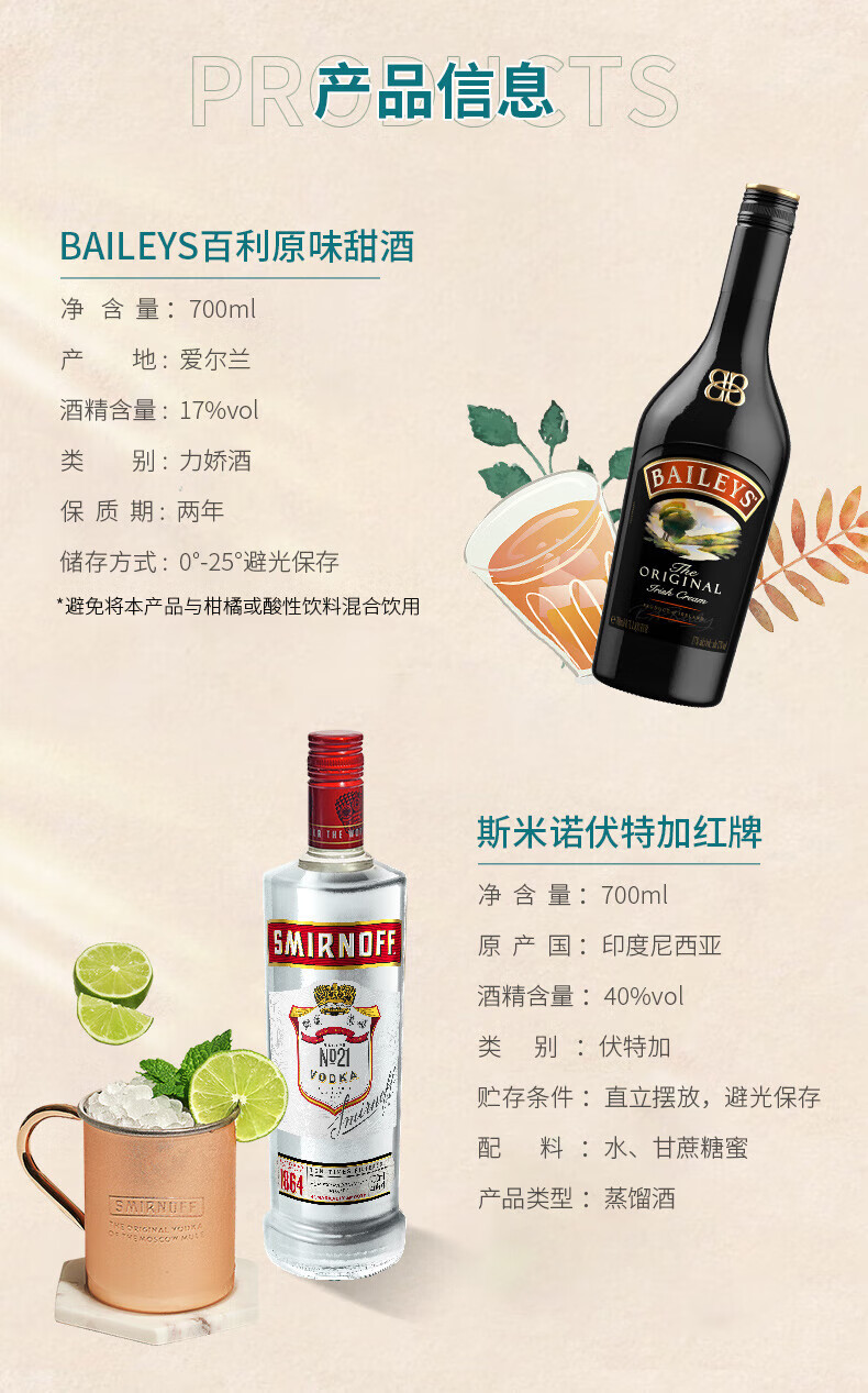 斯米诺伏特加 金酒 朗姆酒 威士忌 力娇酒 调制酒组合装 伏特加700ml+哥顿金酒700ml