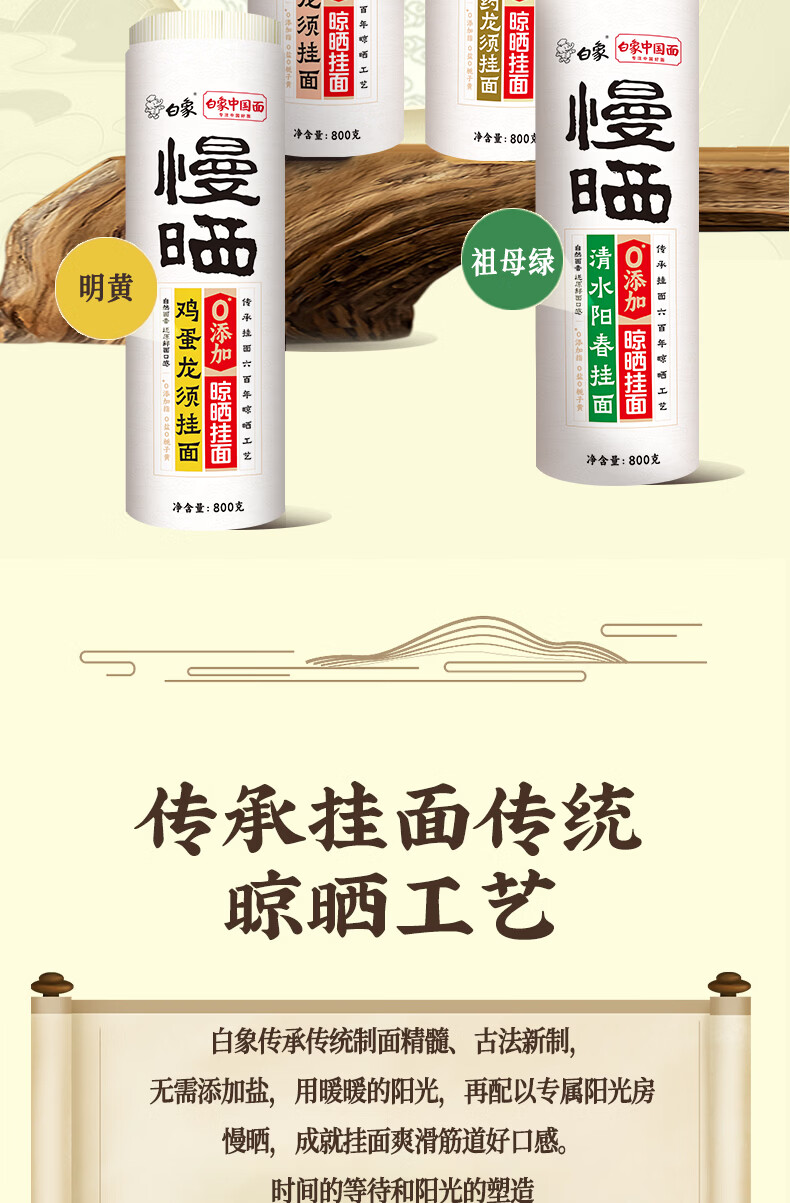 白象 慢晒龙须面 【0盐配方】爽滑速食细面条营养早餐800g*4