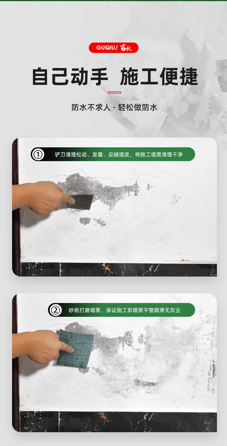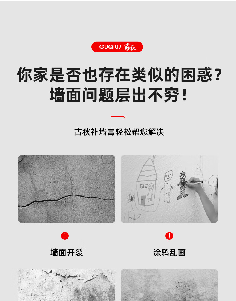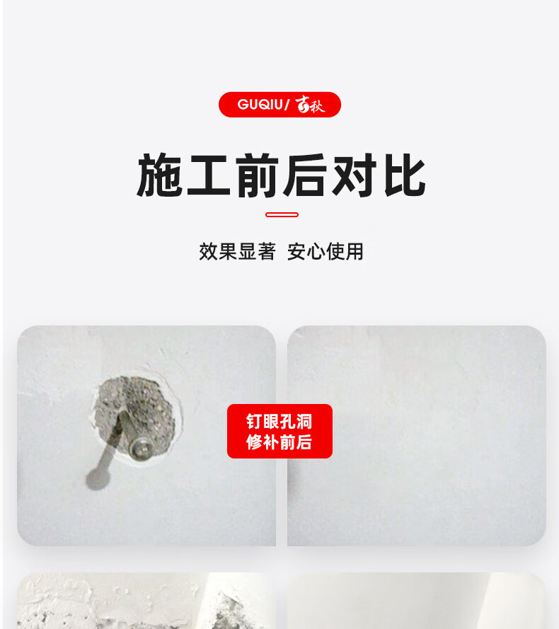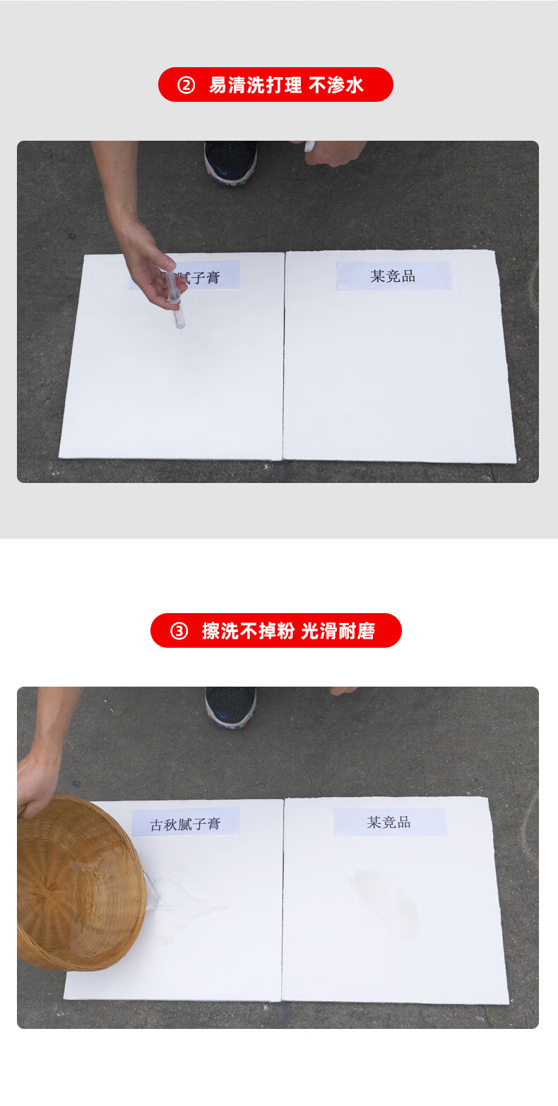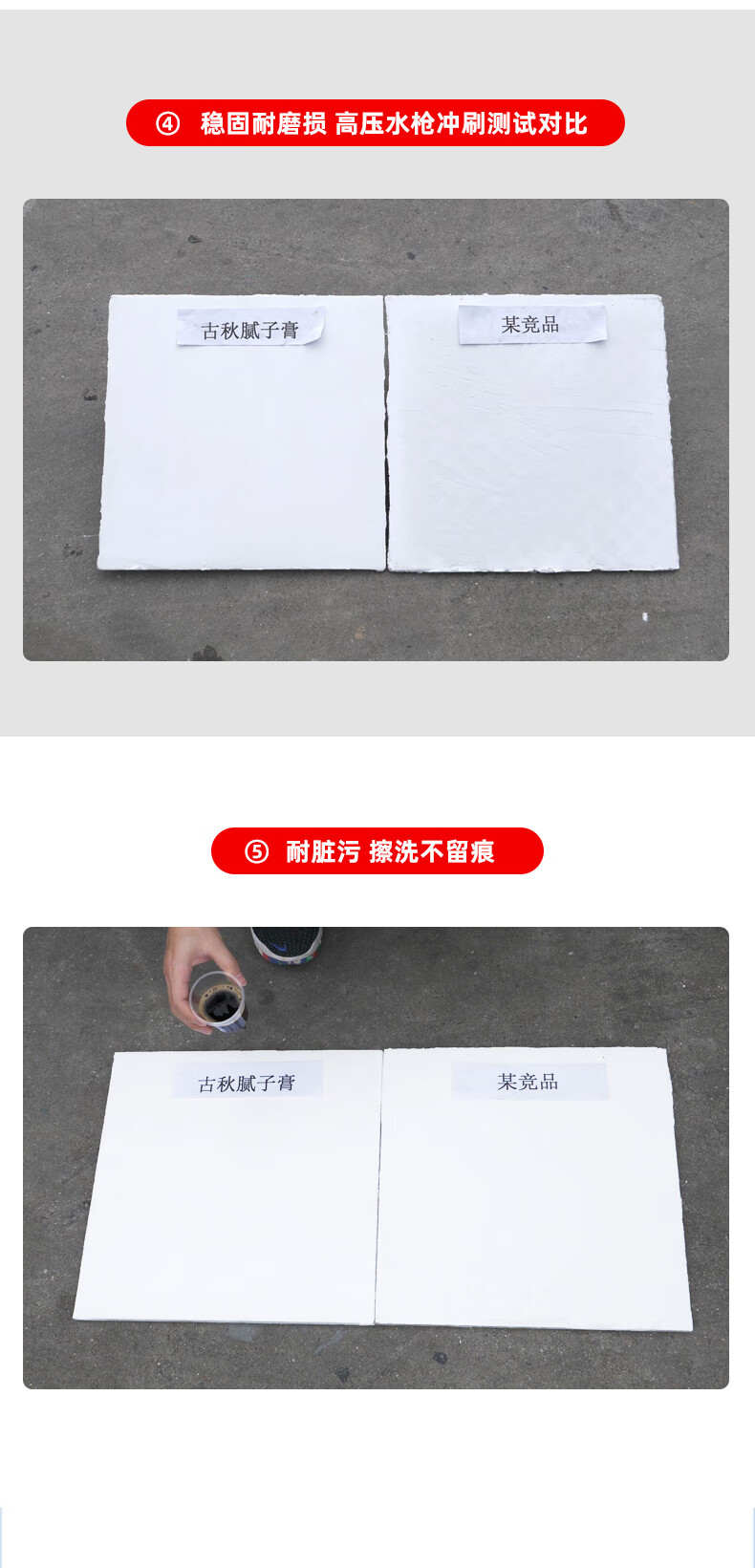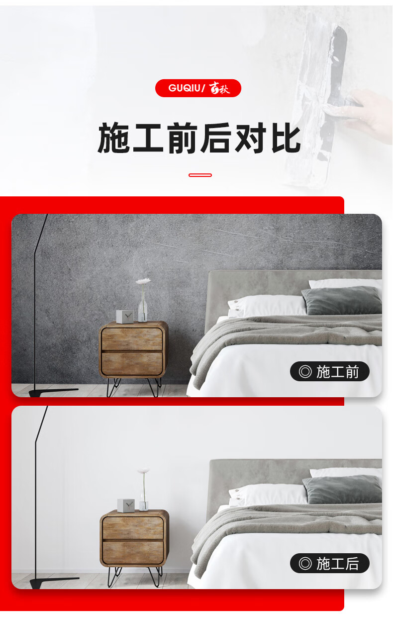 GUQIU补墙膏墙面修补白色翻新仿瓷内墙防水防霉防潮批墙刮墙免漆腻子膏 仿瓷 50斤送【固沙宝】约25平方 25kg*1件