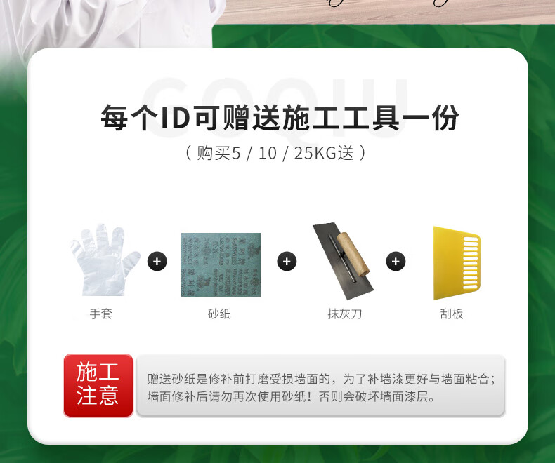 卫涂邦补墙膏墙面修补膏白色墙体修复腻子膏墙壁白墙补墙漆家用防水防潮 补墙膏 5kg*2件 【抗裂\耐水\防霉】约10平方+送工具
