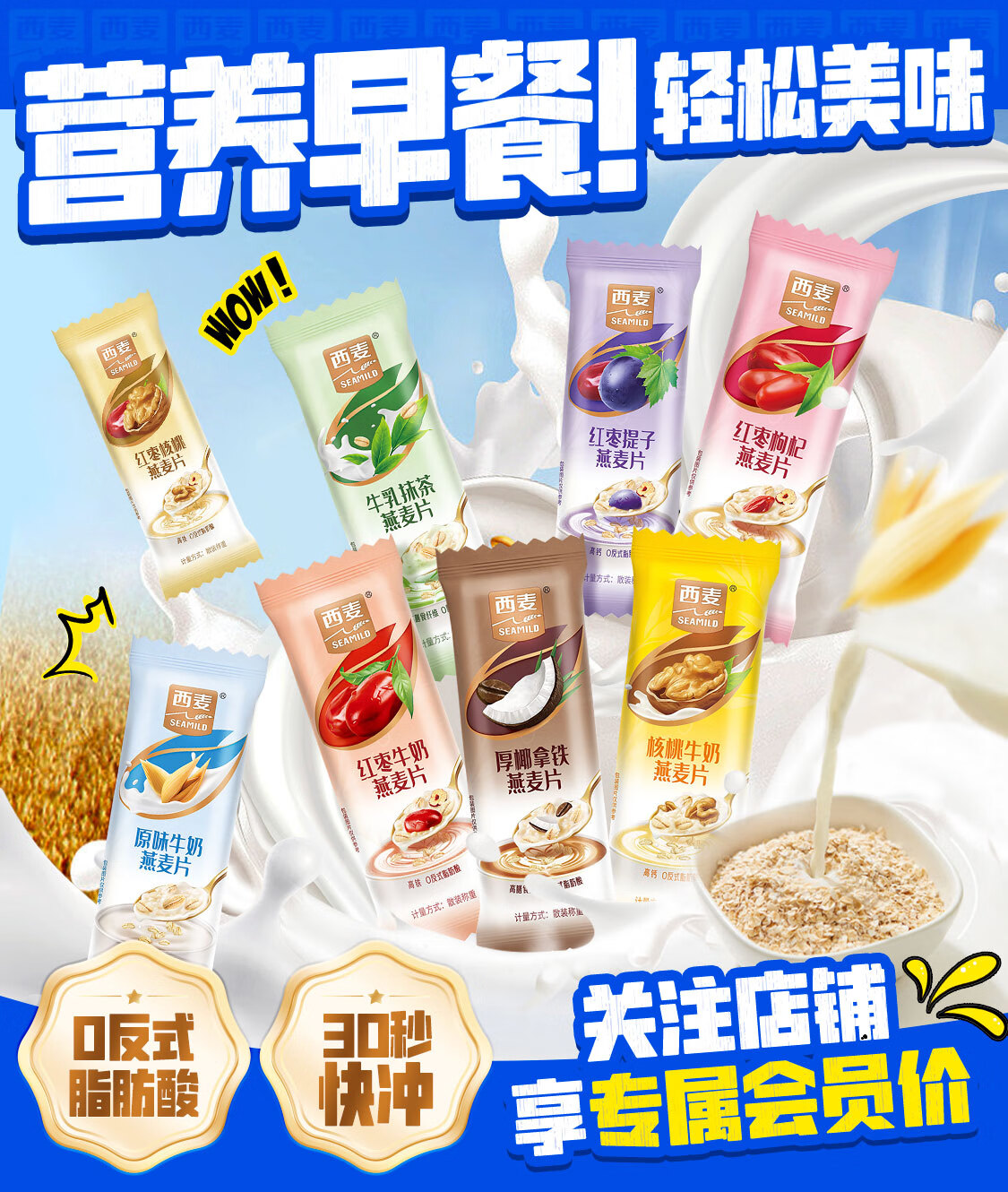 西麦牛奶燕麦片营养早餐代餐高纤维高钙原味独立小包装 【礼盒款】 40包1200g 6口味混合